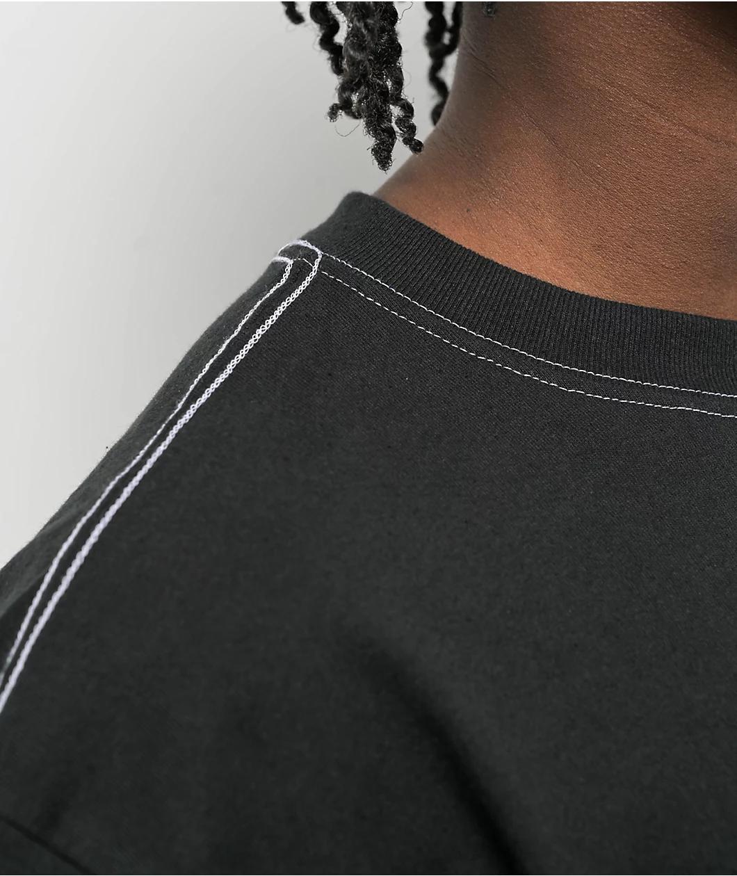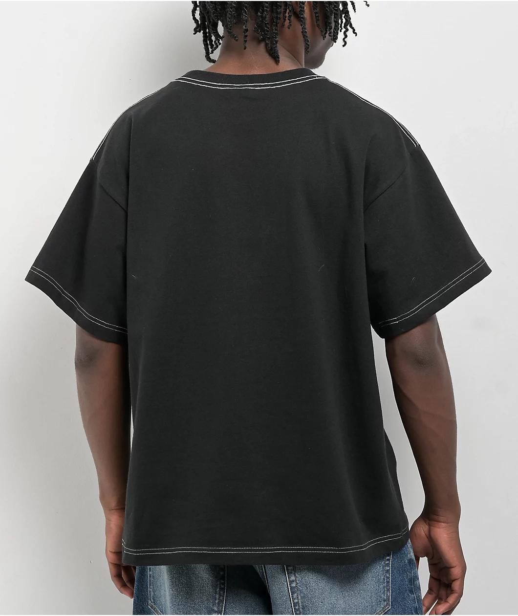Add a sleek minimalist vibe to your outfit with the Portal black t-shirt from ITA. White contrast stitching adorns the collar, sleeve openings, and bottom hemline for a subtle flair. Made with cotton fabric, this tee has a ribbed neck collar and a wo