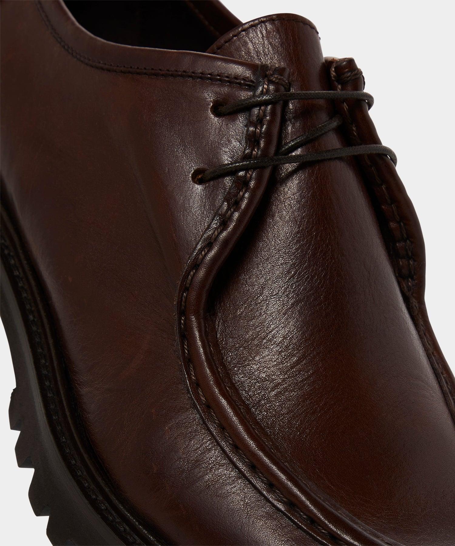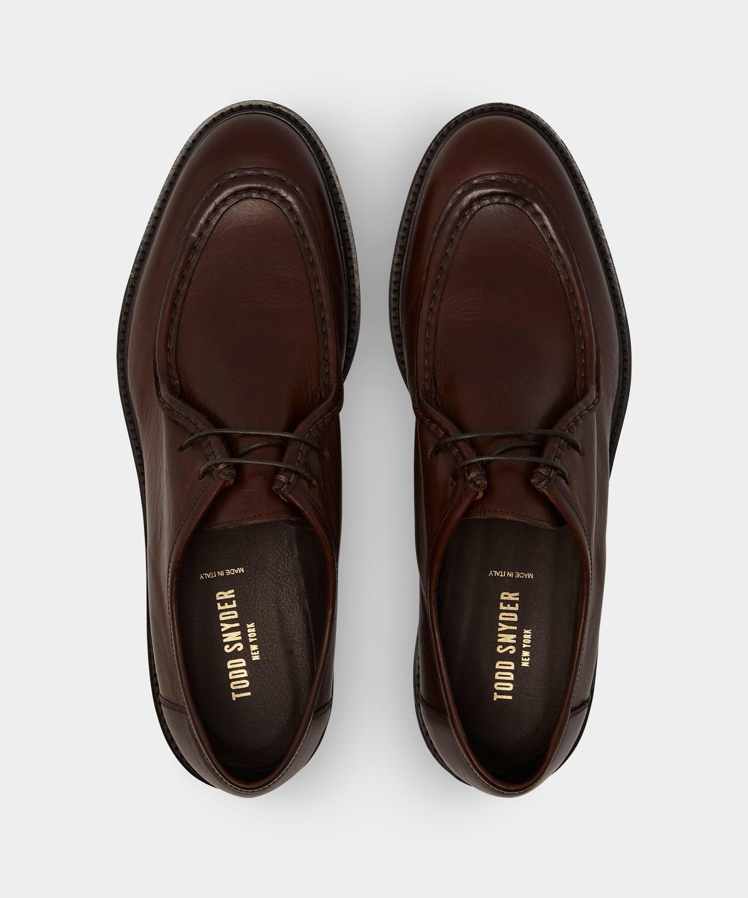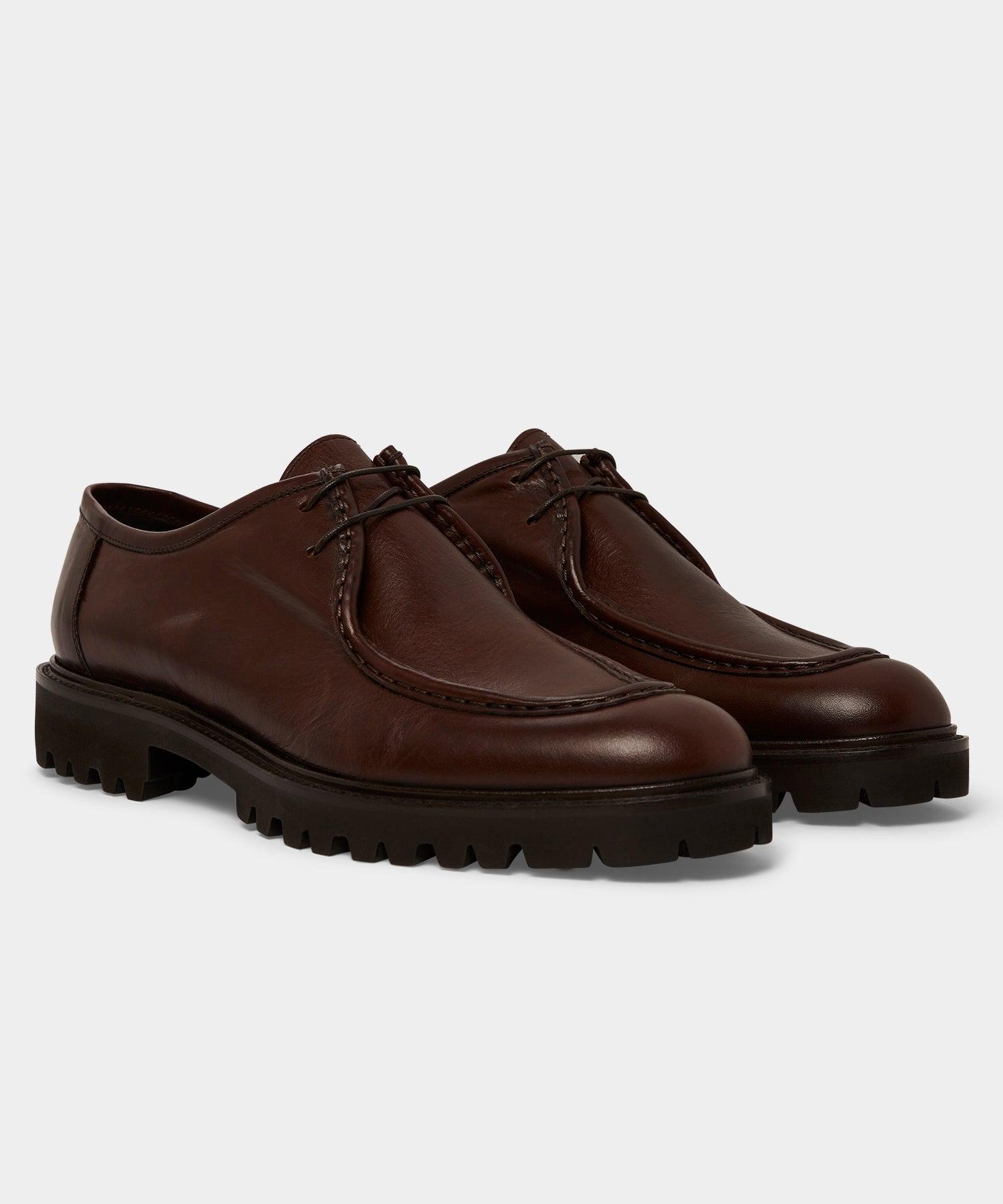 A classic style, the Derby is considered an evolution of the Oxford — more casual, more comfortable, and a bit more versatile. This two-eyelet take is made in Italy: leather uppers sit on a lug sole in lightweight EVA. This adaptable casual dress shoe looks just as good with denim and a cardigan as it does with tailored trousers and a sport coat. Leather upper EVA lug outsole Two-eyelet derby, leather lining, waxed cotton lace Made in Italy Special leather care only Style DRS008 * This item is available for domestic shipping only.
