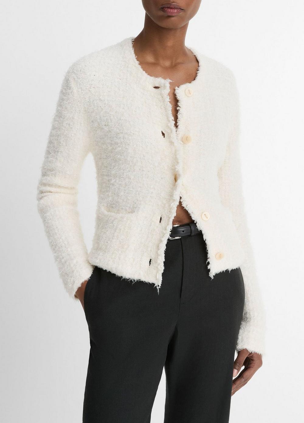 Inspired by the timeless lady jacket, our cardigan is knit from an Italian cotton blend in a fluffy, tweed-like texture and finished with slip front pockets.