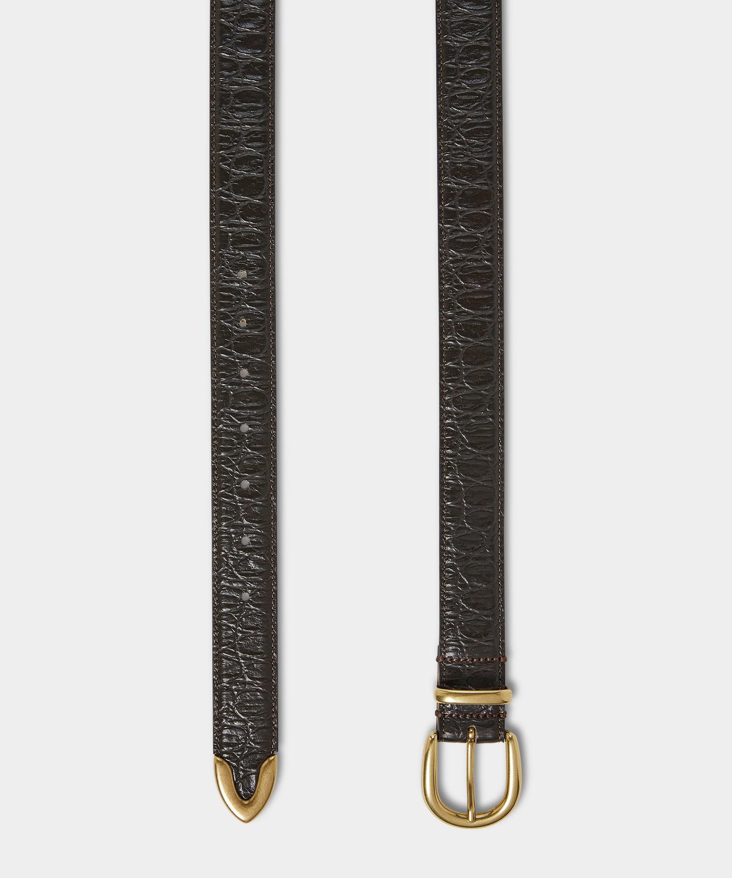 Both practical and stylish, a good belt is a wardrobe essential. This one is made from premium Italian leather, stamped with a crocodile texture. It’s tipped in polished steel, and features a steel buckle for chic finish. Crocodile stamped Italian leather, metal buckle Made in Italy Style AC2880365