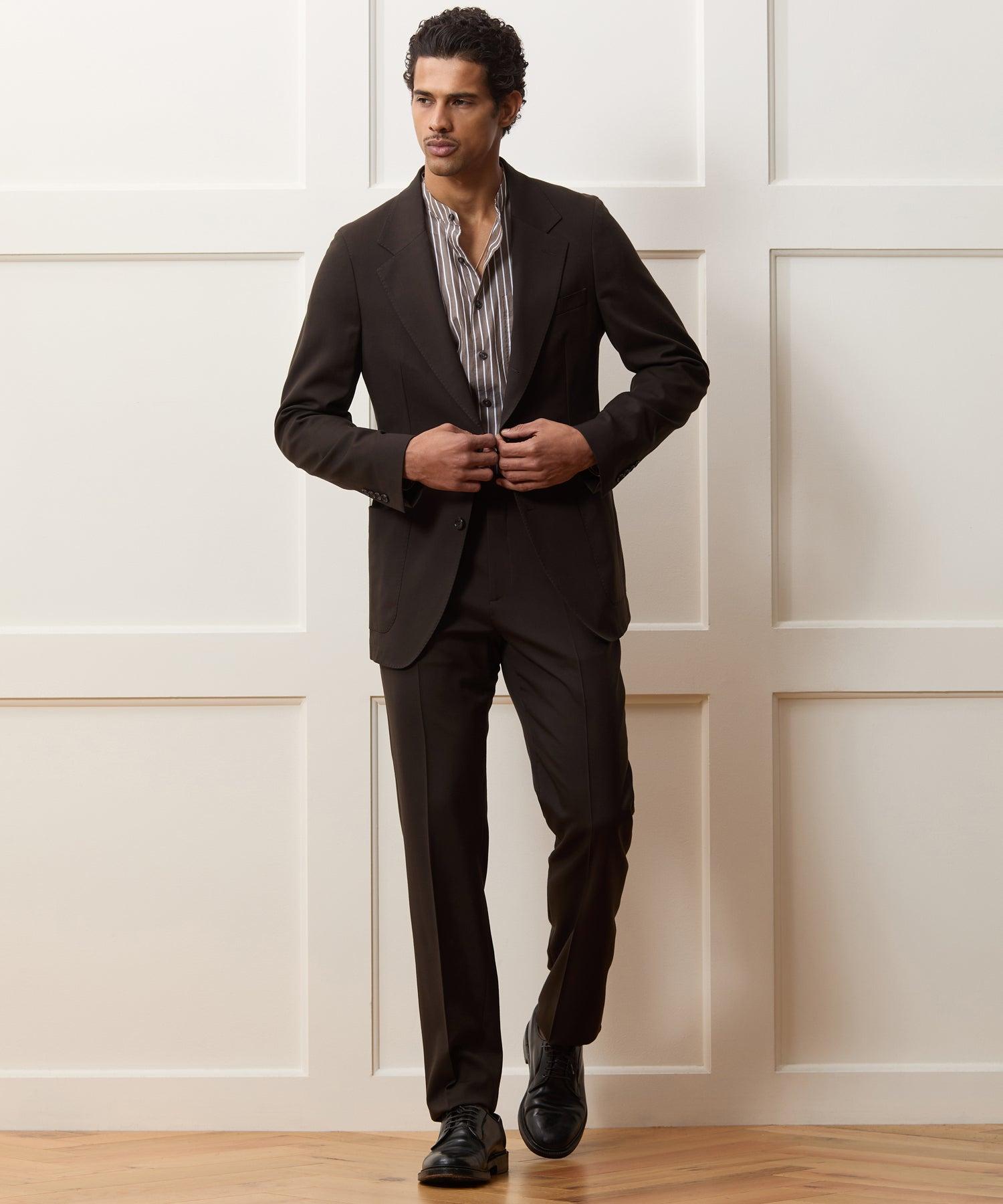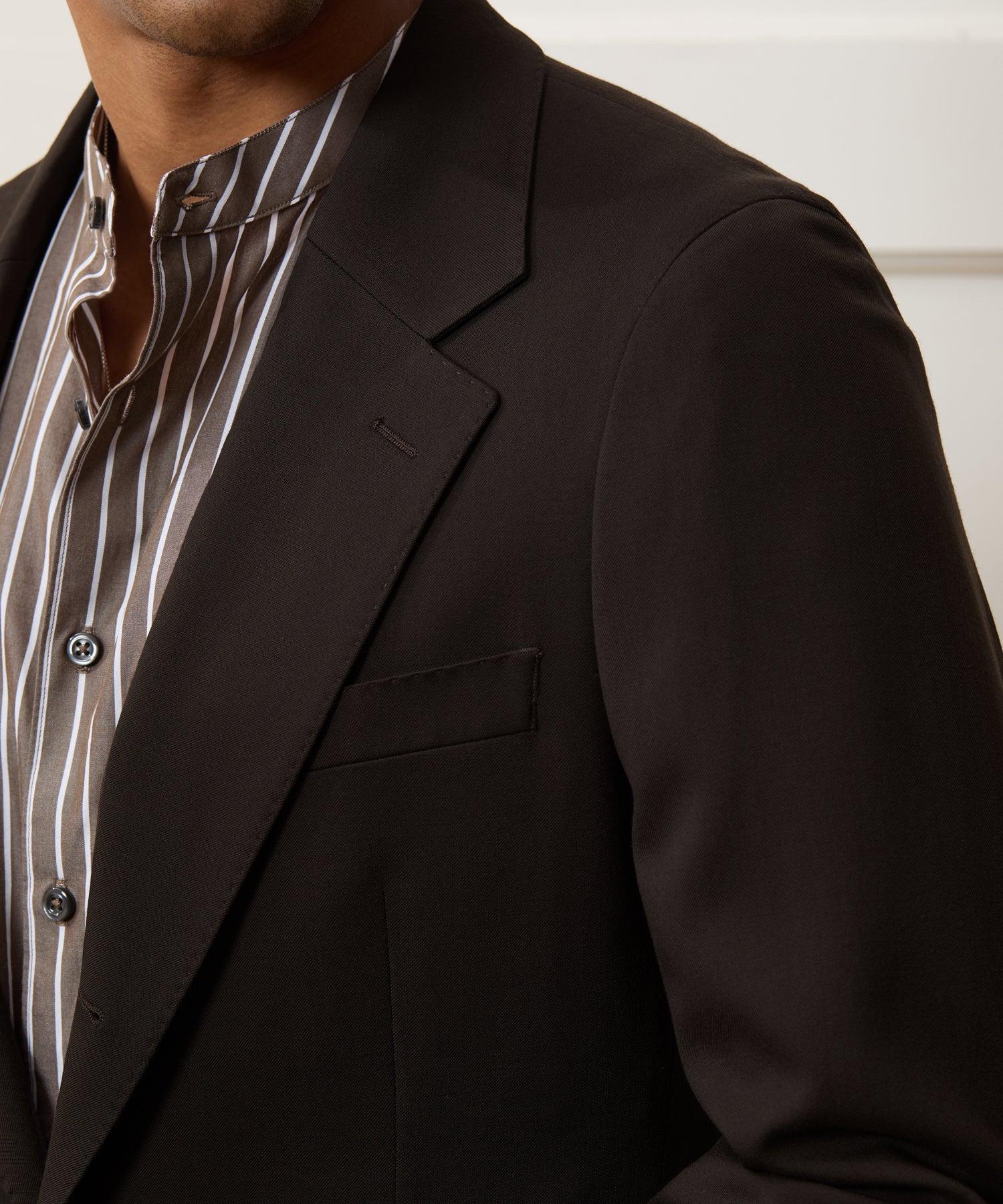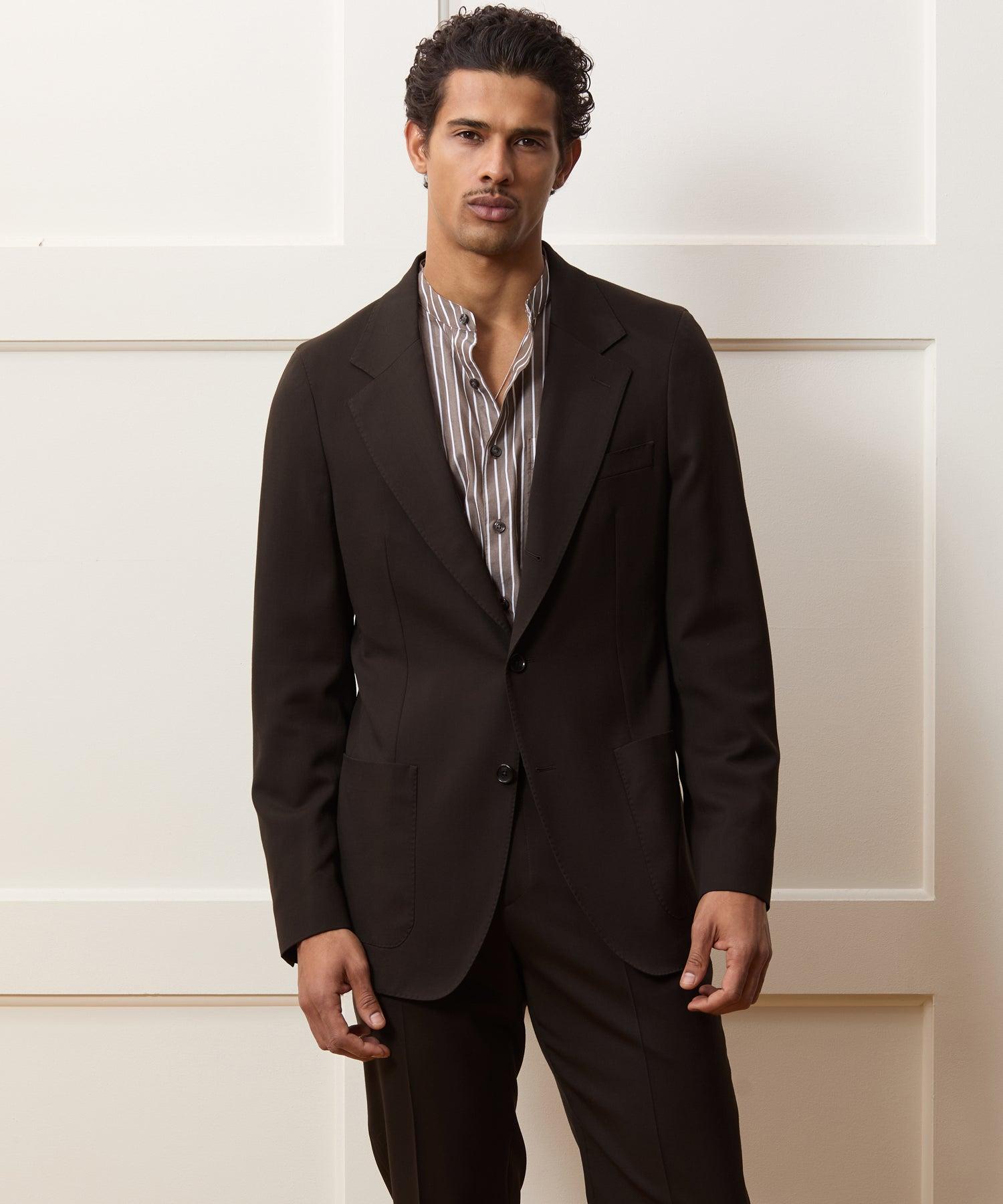 As elegant as casual gets, our Madison Suit Jacket represents the epitome of soft tailoring. The fabric is an Italian gabardine, a type of twill worsted wool first introduced in the late 19th century. Lightweight, breathable and durable, our take is a transitional weight 4-ply wool with perfect drape. It has a classic fit, with a natural shoulder and a slightly nipped-in waist. Details include a double vent in the back and a lightweight butterfly lining. There’s also a chest pocket known as a “barchetta” (Italian for “little boat”) because the sleek curvature of the pocket resembles a small skiff. Oh, and did we mention there are matching pants, too? Matching Gurkha Trouser & Side Tab Trouser Available 100% Virgin Wool Classic Fit Model is 6'2" and is wearing a size 40L Partially-Lined Interior Natural Shoulder Welt Chest Pocket Internal Pocket at Wearer’s Left Patch Pockets at Hip Nipped-In Waist Double Vent Garment Made in Portugal Dry Clean Only. Do Not Bleach. Cool Iron As Needed. Do Not Tumble Dry Style BL304290