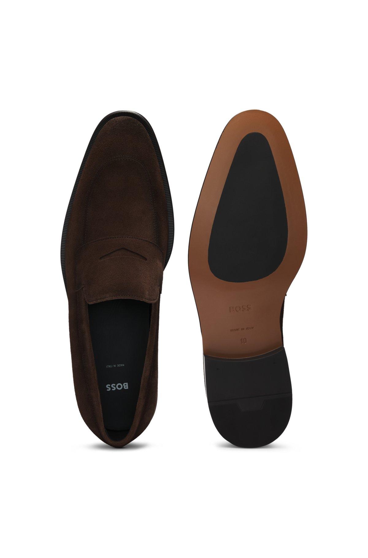 Italian-made suede loafers with penny trim