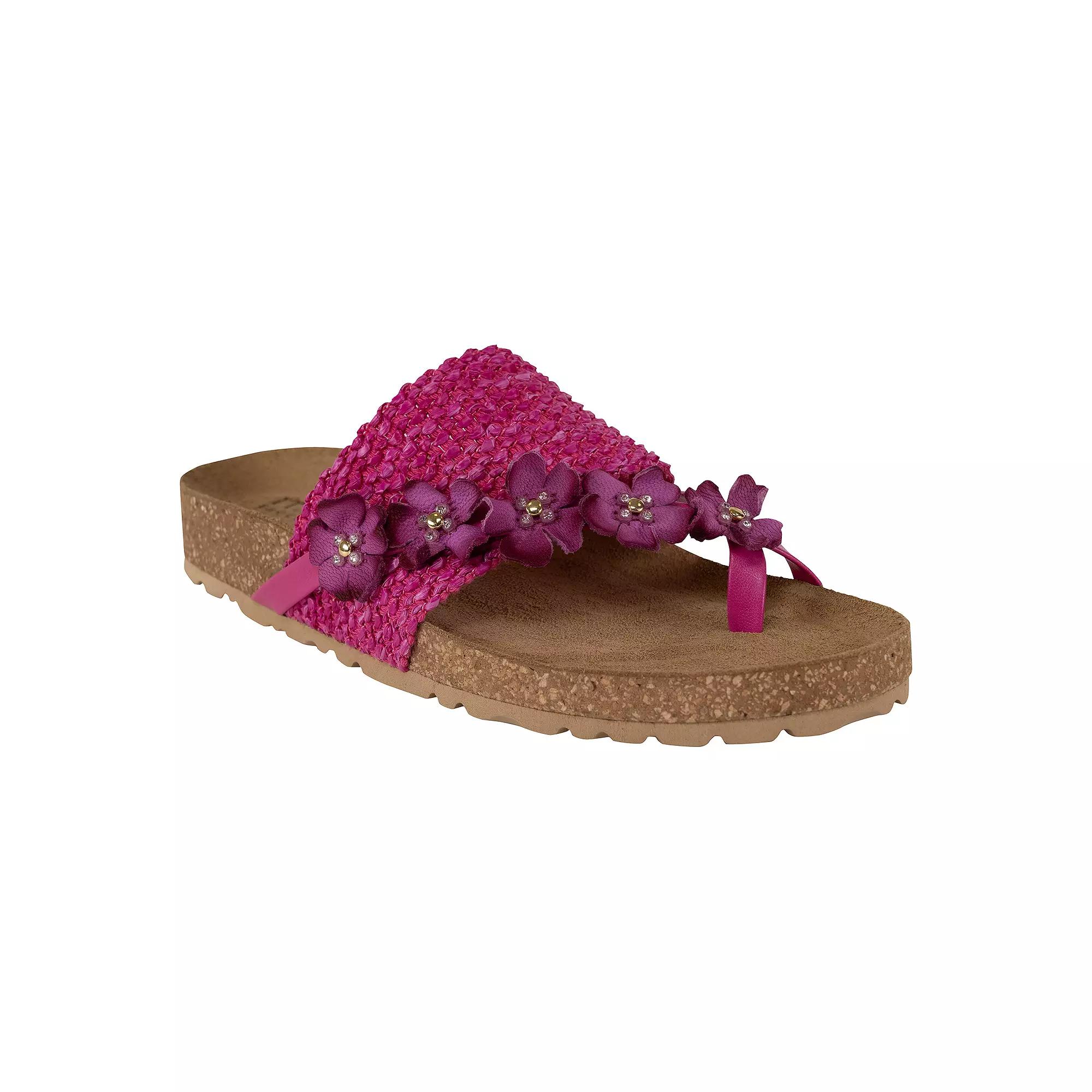Italian Shoe makers Patrisha Womenâs Footbed Sandal Line the way with flowers in the Patrisha footbed Sandal from Italian Shoe makers. Breezy style with an elastic woven upper , this Sandal also features a toe loop for a secure fit. The footbed cradles, while the cork-wrapped platform sole offers subtle lift. Synthetic upper Slip-On Toe loop Cushioned footbed 1â heel