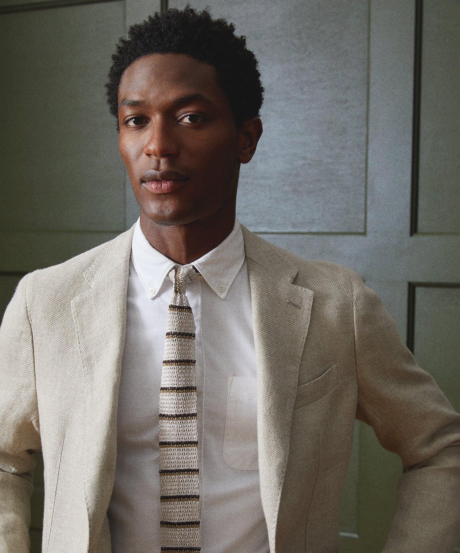 A refined take on a menswear staple. This classic striped tie is knit in Italy from pure silk and has a subtle, open-weave texture that elevates any outfit; it’s versatile enough to dress up a casual look or dress down a more formal one. Try tying a four-in-hand knot to get the perfect dimple. 100% Silk Made in Italy Dry Clean Only 56 1/4 " Length x 2" Width Style Number AC114123
