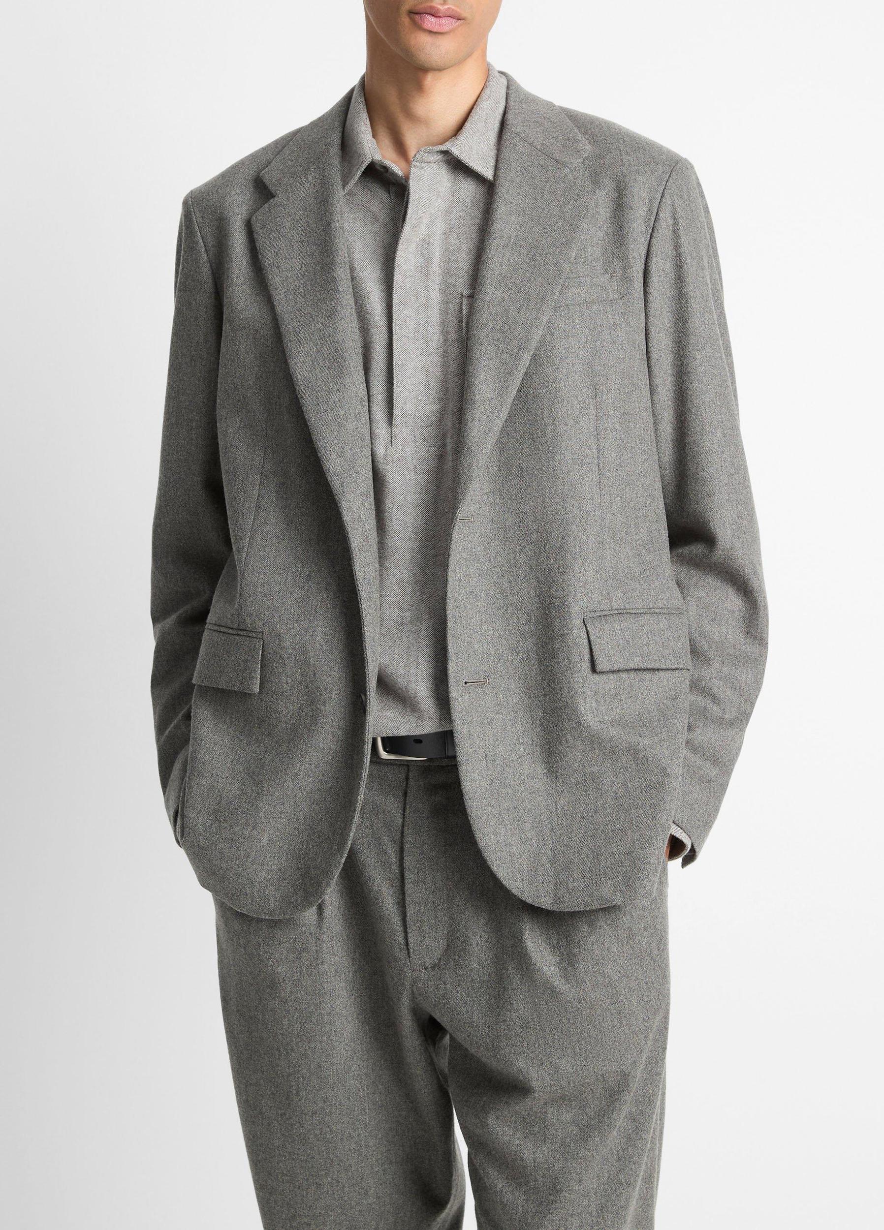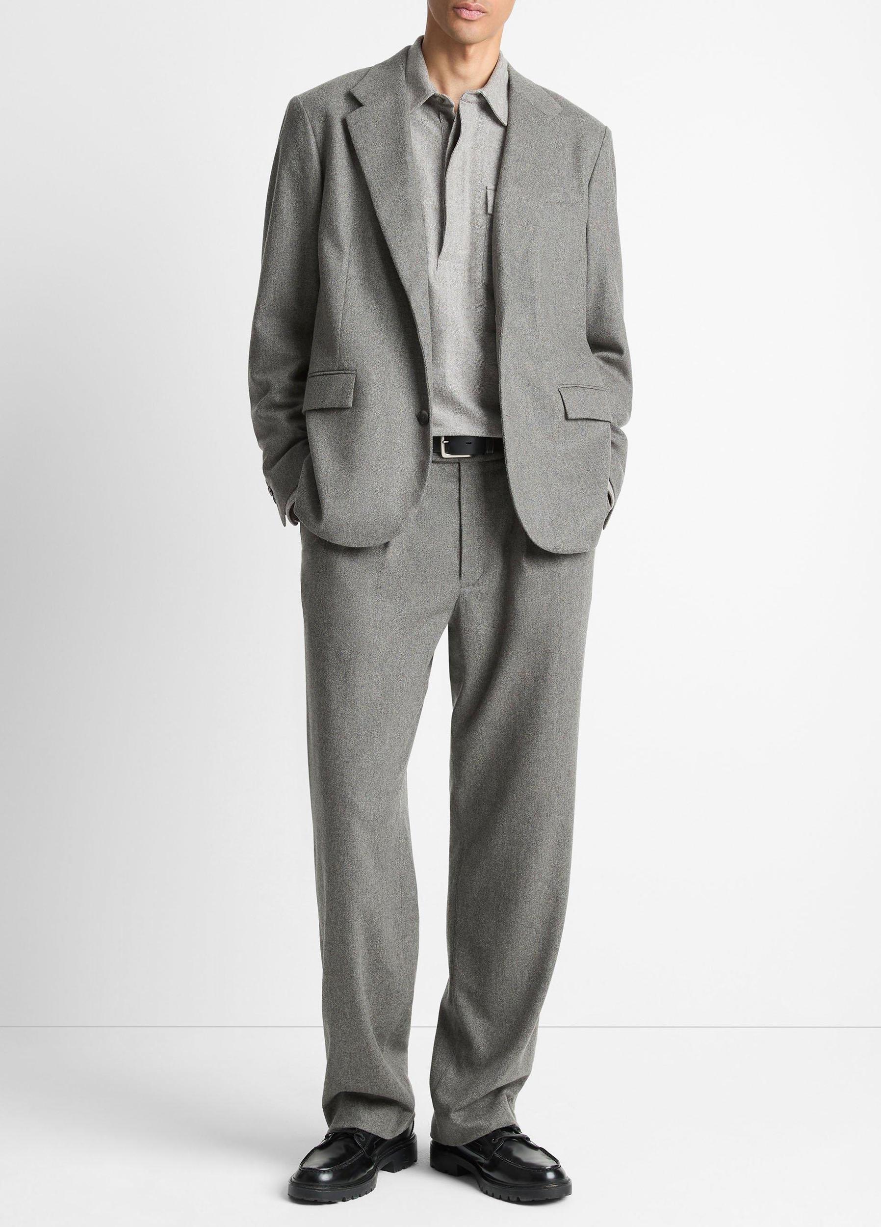 A blazer is an undeniable wardrobe essential. Ours is crafted from an Italian wool-blend flannel for a cozy update to the sartorial staple. It pairs back to our matching double-pleated trouser for a full suit, but the versatile grey hue will effortlessly mingle with the other pieces in your closet.
