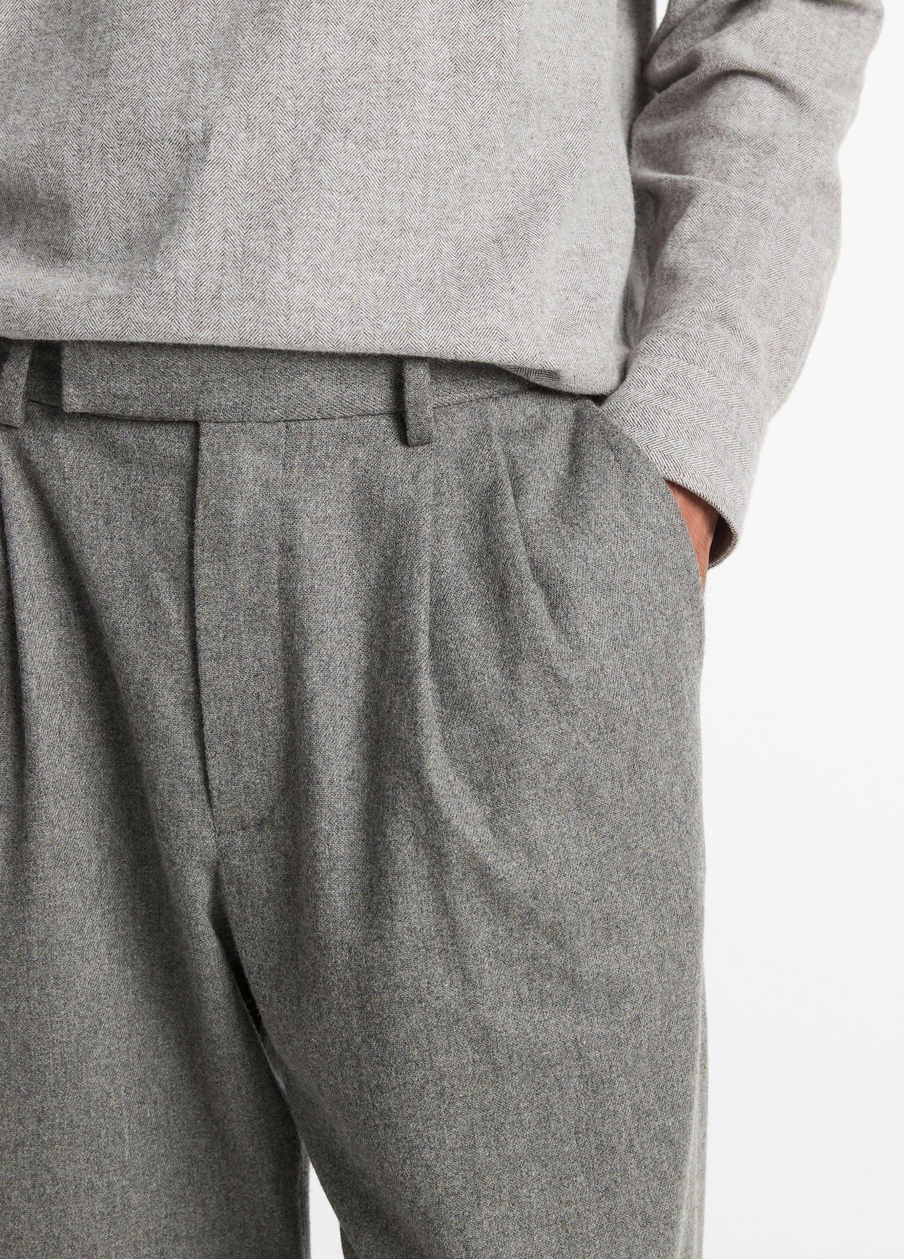The beauty of this double-pleated trouser is its ability to seamlessly shift between casual and dressier occasions. It pairs back to our matching blazer for a full suit, but the versatile grey hue will effortlessly mingle with the other pieces in your closet. We crafted it from an Italian wool-blend flannel for a cozy update to the sartorial staple.