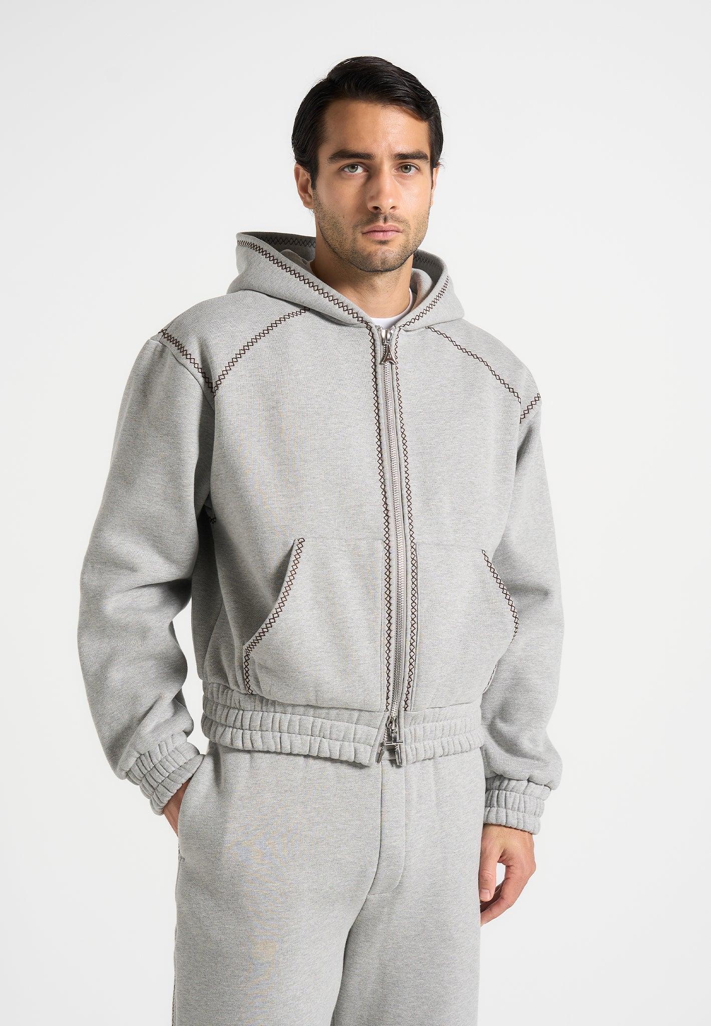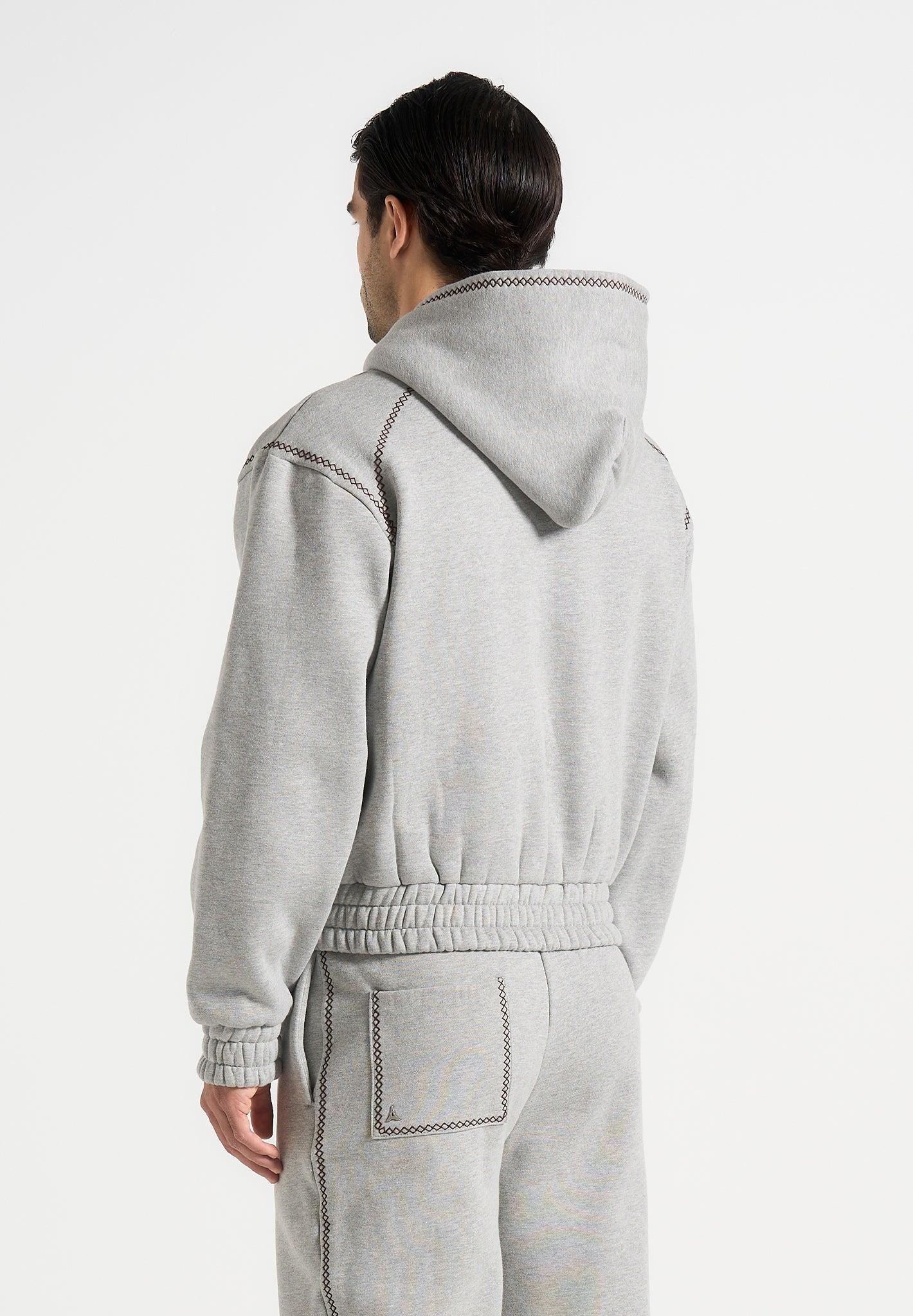 This elevated everyday piece combines comfort with considered design. Cut in a relaxed fit from heavyweight cotton, it features contrasting whipstitch along the seams for subtle structure. A two-way zip offers styling versatility, while ribbed trims and welt pockets add a clean, functional finish. The relaxed design provides comfort and ease throughout daily wear without compromising style. Contrasting whipstitch detailing along seams Relaxed fit for comfortable everyday wear High-quality heavyweight cotton Two-way zip fastening for adjustable styling Ribbed and elasticated hem and cuffs for a tailored look Front welt pockets with contrasting whipstitch detailing Manière De Voir silver Eiffel plaque zipper 65% Cotton 35% Polyester Always check the care label for wash instructions.