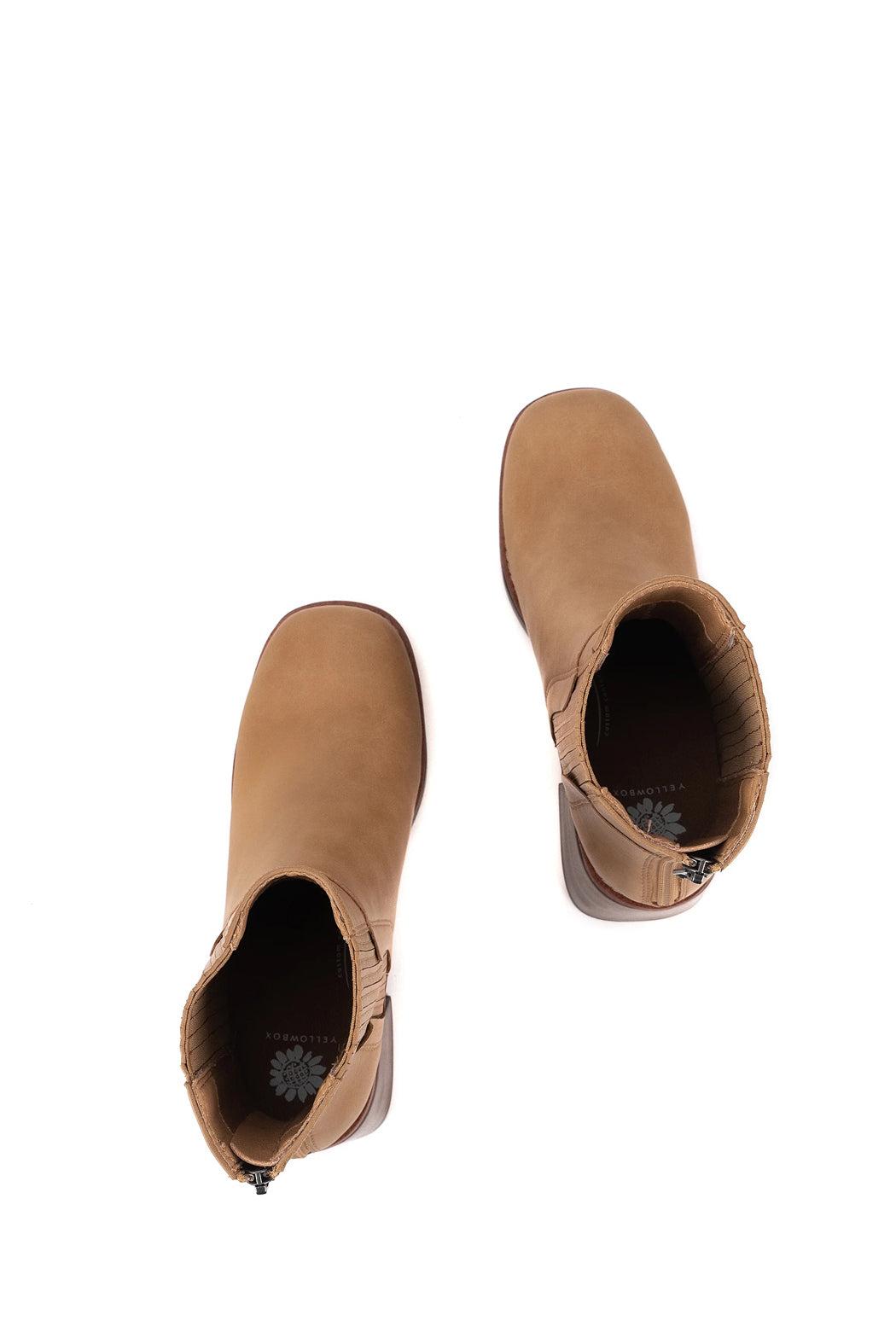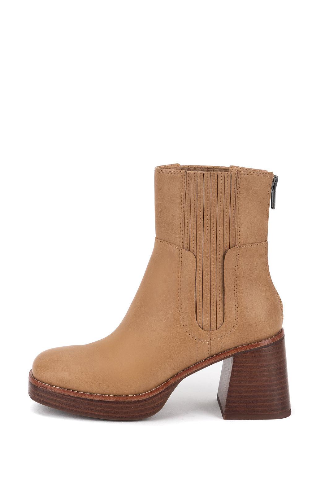 Ivanka is a staple fall bootie. The wooden look of the heel combined with the tan faux leather upper makes this boot perfect with any outfit.