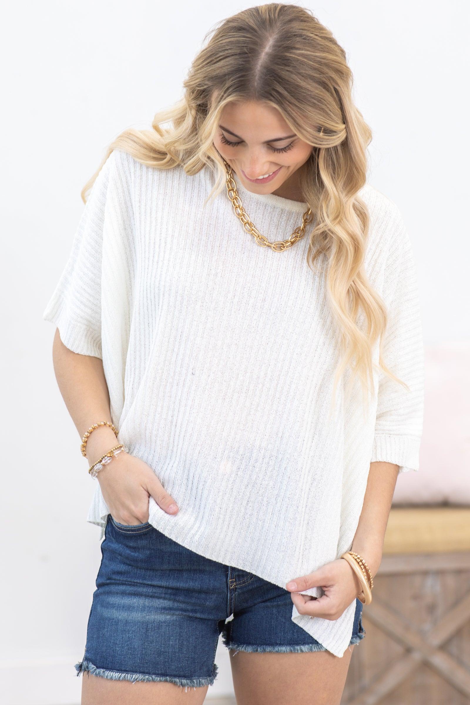 Product Details Colors: Ivory Print: Textured Solid Neckline: Round Sleeve: Short Sleeve Hemline: Straight Brand: Mittoshop Material and Care Self: 65% Acrylic 35% Nylon Hand Wash Cold Hang/Line Dry Size and Fit Small/Medium: Bust 64" Waist 62" Length 22.5"/23.5" Medium/Large: Bust 66" Waist 64" Length 22.5"/23.5" Photo model is 5'7 and wearing a size small/medium Video model is 5’8 and wearing size small/medium