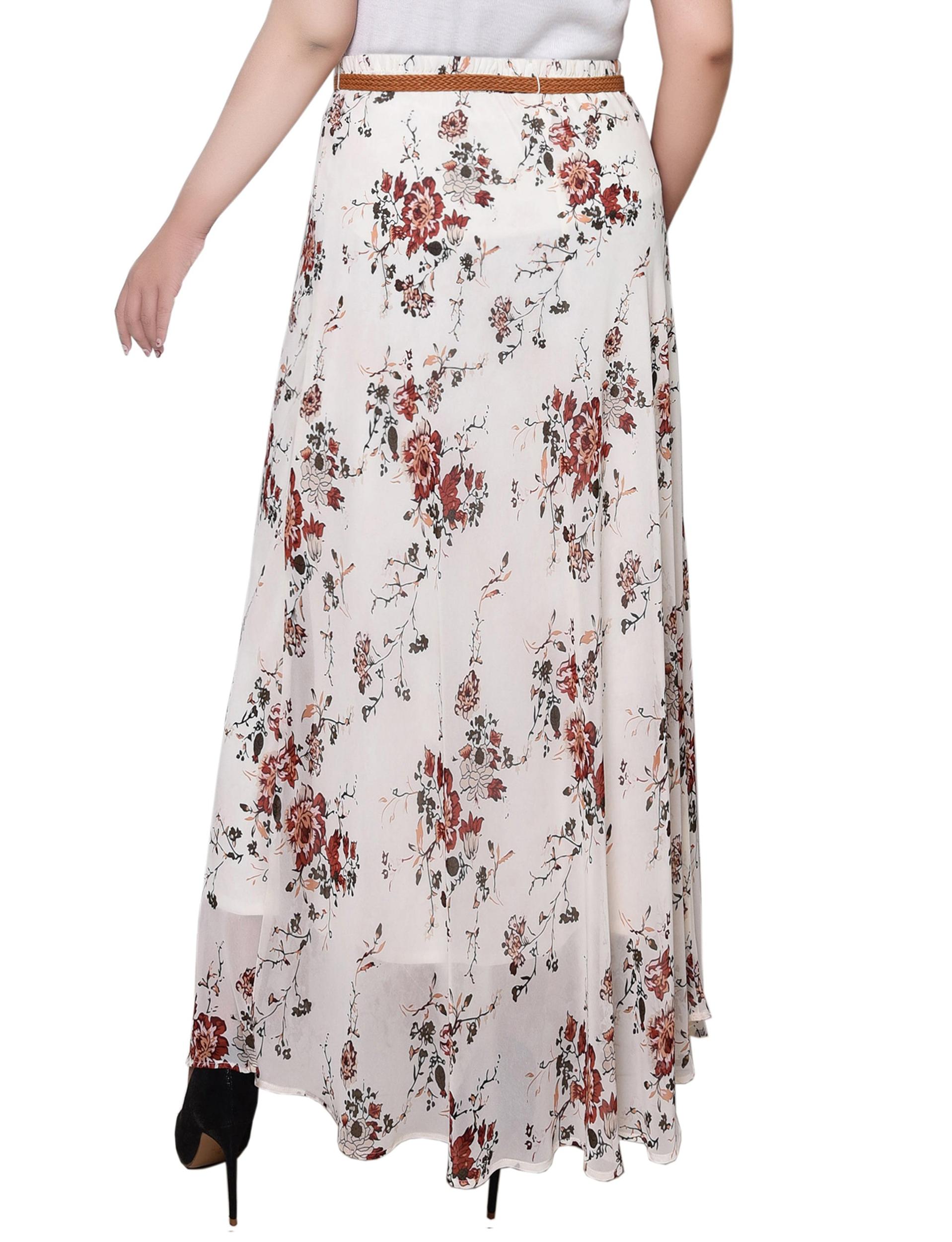 Ivory Floral Chiffon Maxi Skirt - Plus