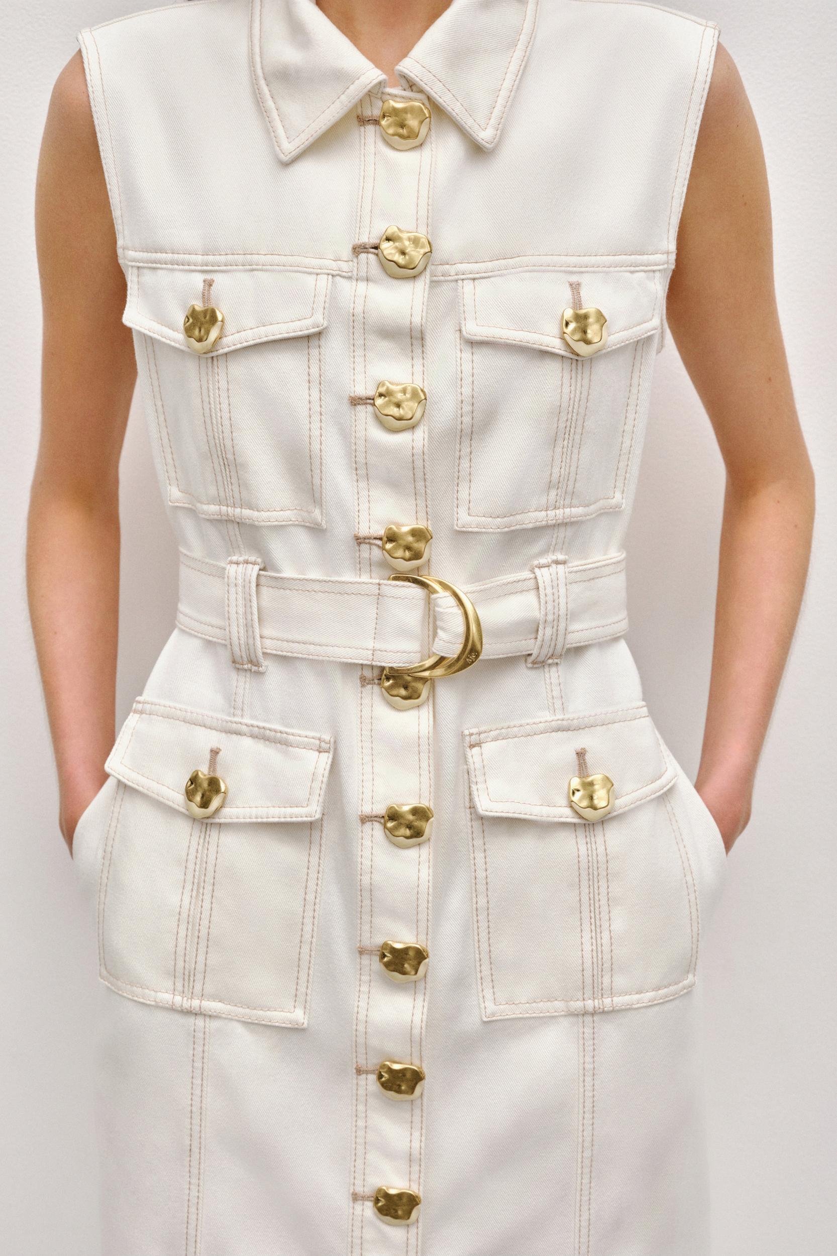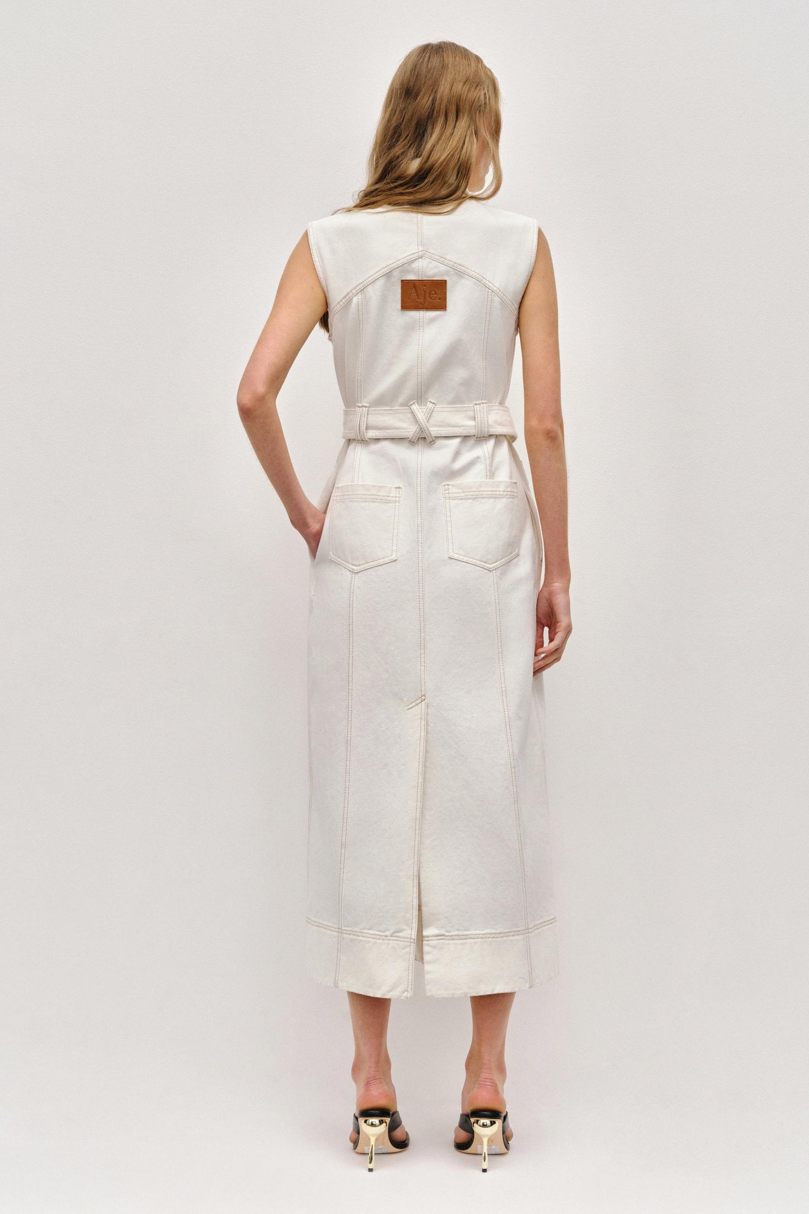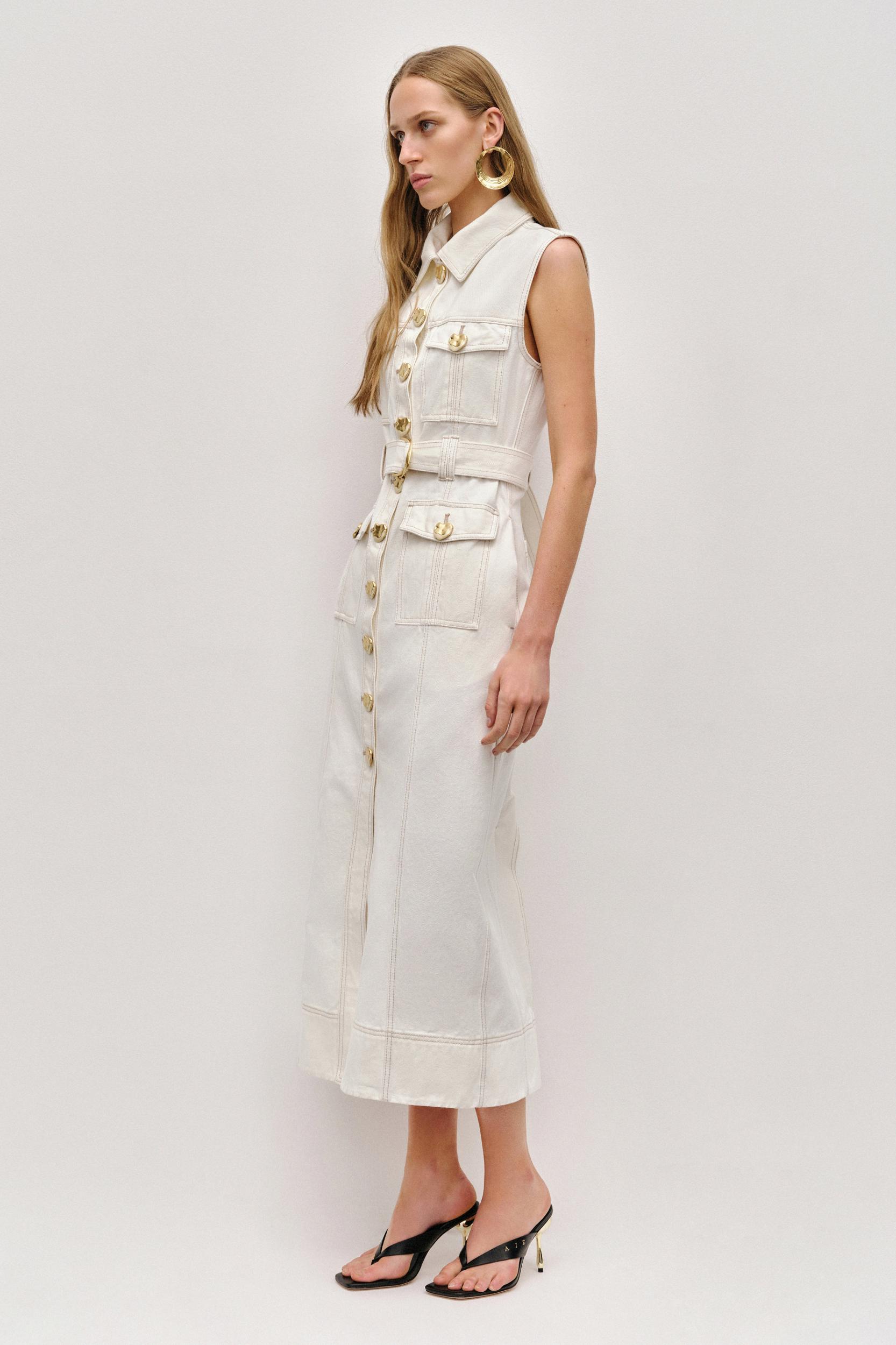 PRODUCT DETAILS Women's denim midi dress Shirt collar with feature button Front button placket Chest pockets Twin needle topstitching D-ring belt Column skirt Front and back pockets Cross-back and twin belt loops Back hem split Leather logo patch at back 100% Cotton Delicate Cold Machine Wash Shop All Dresses SIZE AND FIT Model wears a size AU 8/S Height: 178cm/ 5’10 Bust: 76cm Waist: 65cm Hips: 90cm