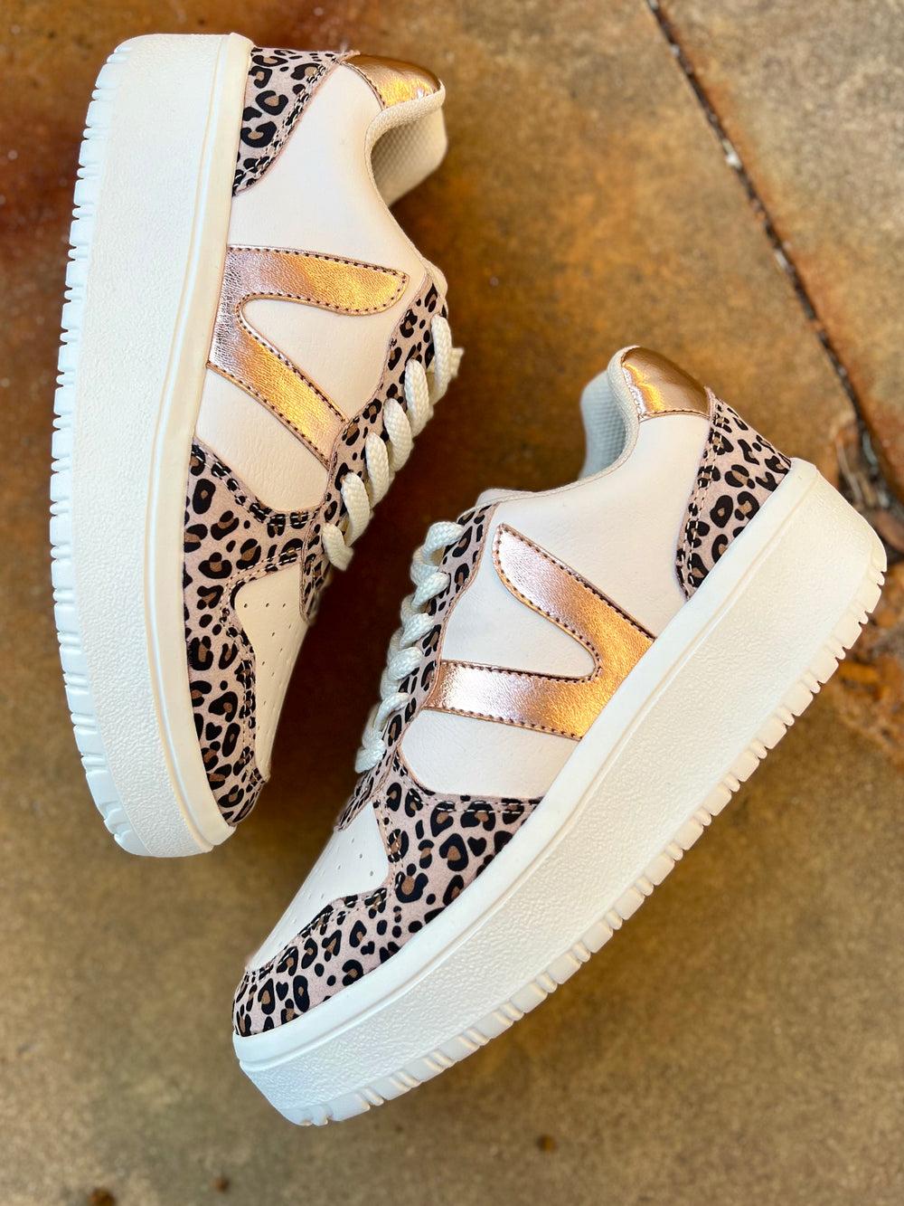 Ivy Nude Leopard Sneakers | GussieduponlineUnleash your wild side with our Ivy Nude Leopard Sneakers! These stylish and comfortable sneakers feature a platf...