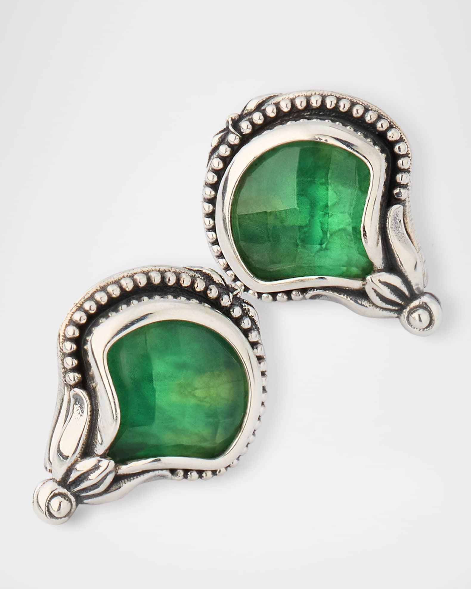 Ivy Rock Crystal, Aventurine and MOP Triplet Stud Earrings