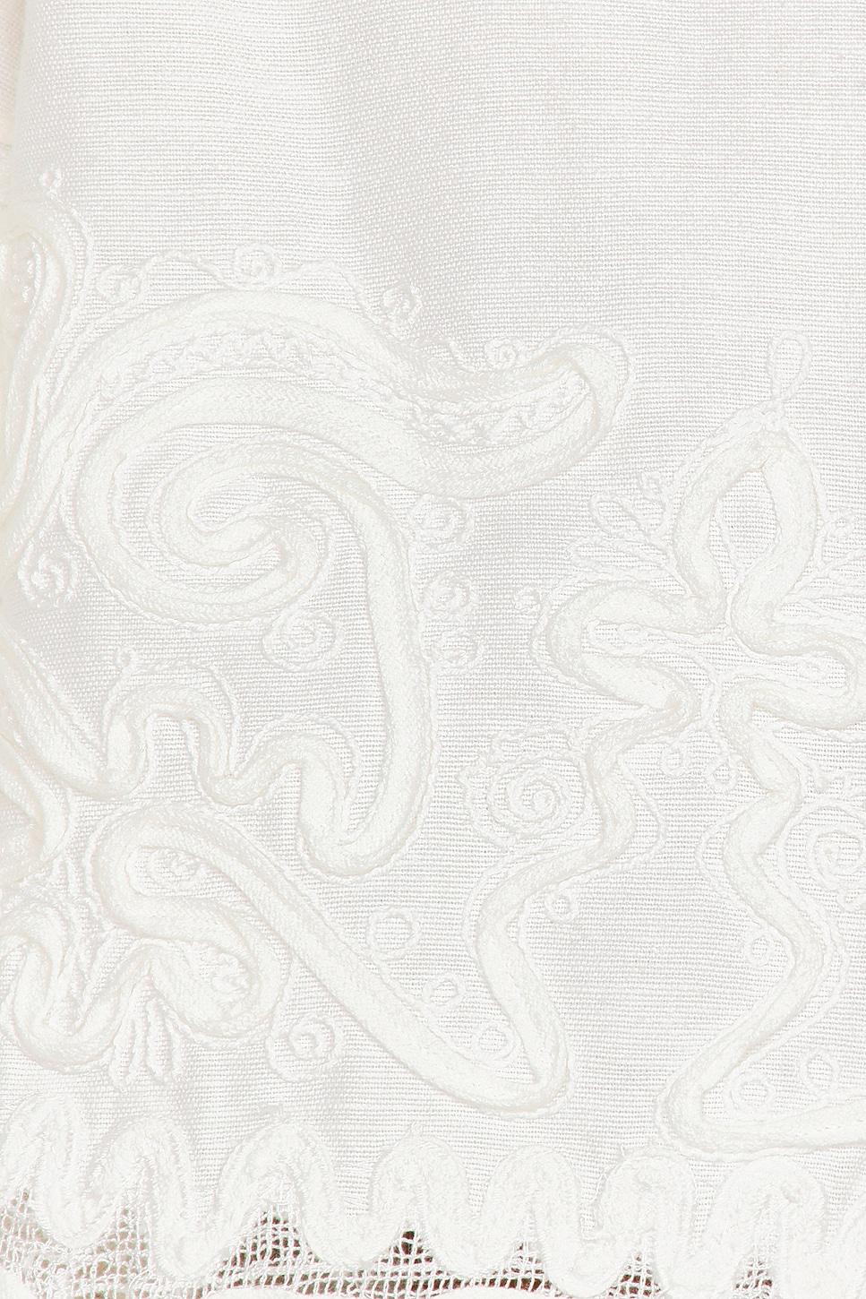 Self: 85% cotton, 15% linenEmbroidery: 100% polyester. Dry clean only. Front button closure. Midweight linen fabric with embroidered trim. Made in India. Revolve Style No. SEA-WS15. Manufacturer Style No. PF25-055.