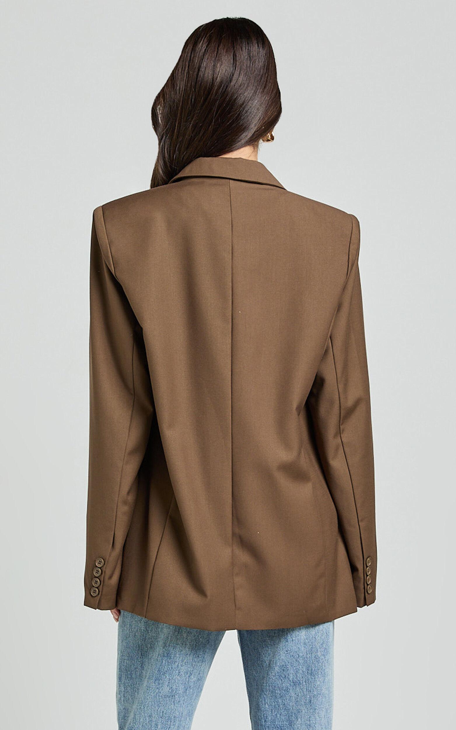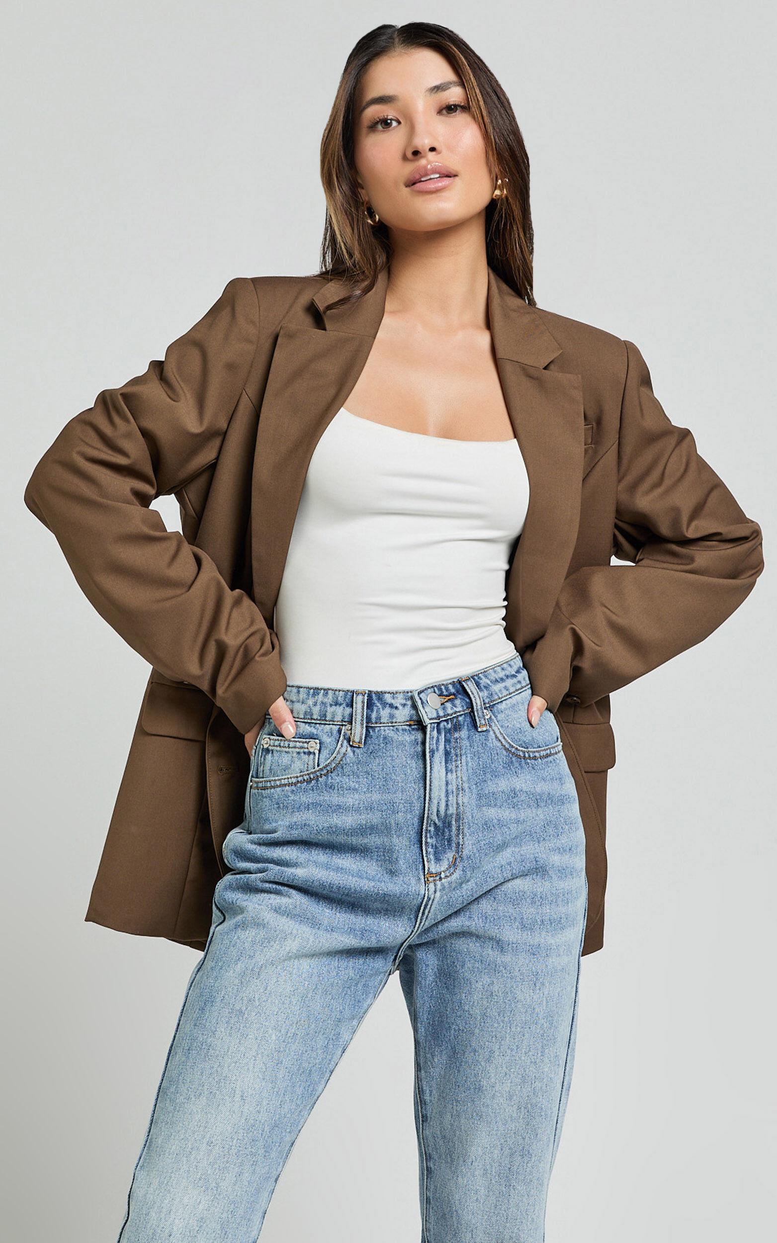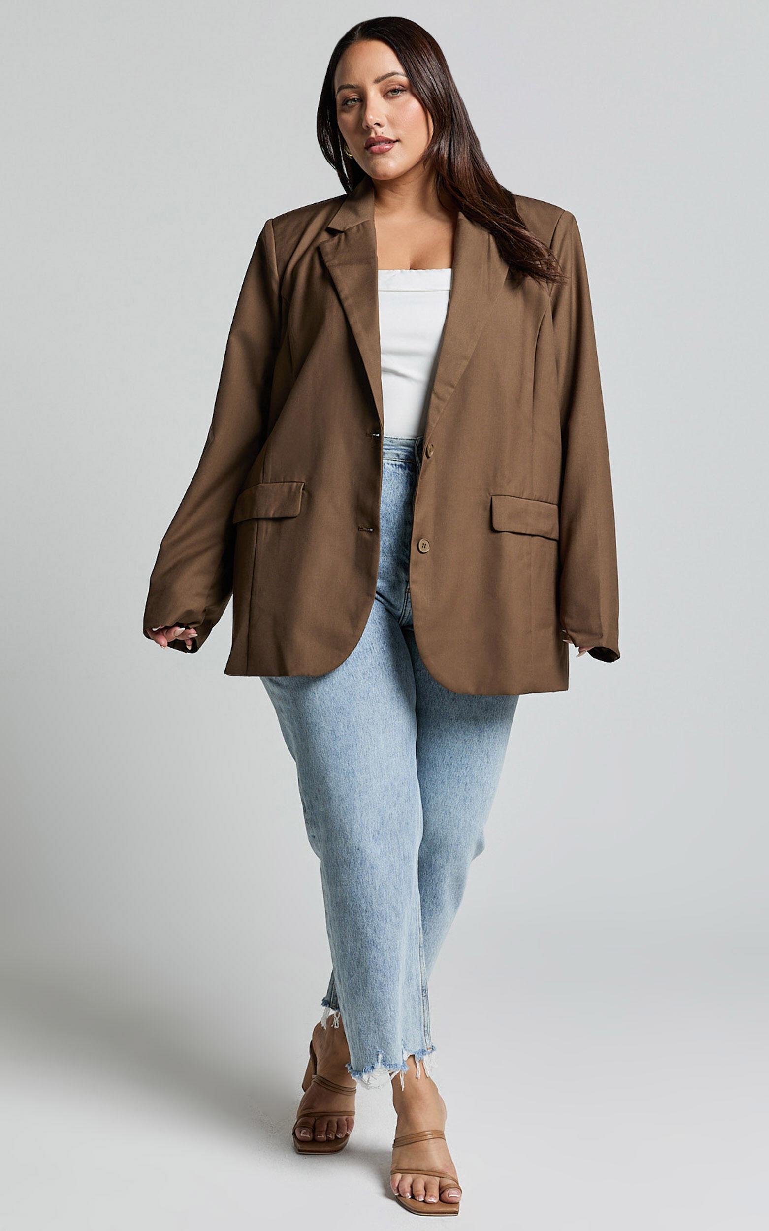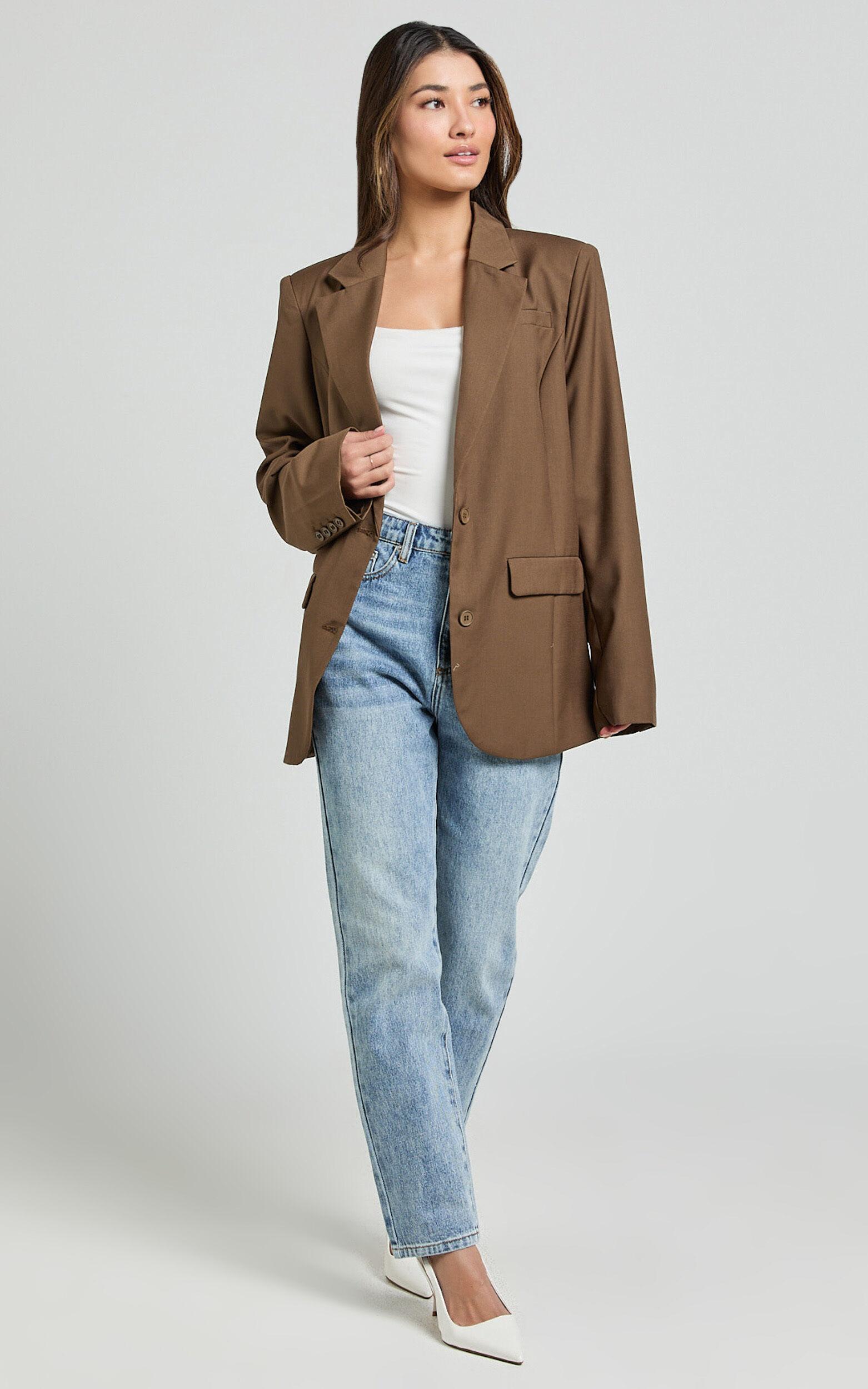 Step up your style game with the Izara Blazer in Oak. This oversized fit blazer is the perfect addition to any outfit, whether you're dressing it up for a party day or keeping it casual for a standard day at the office. Made from high-quality polyester, this blazer features long sleeves and a stylish brown color that adds a touch of sophistication to any look. Pair it with jeans and a t-shirt for an effortlessly chic vibe or wear it over a dress for a more polished ensemble. No matter how you choose to style it, the Izara Blazer is sure to elevate your fashion game.Product Details:Blazer styleLong sleevesMaterial: PolyesterStandard length jacketSuitable for party day occasionsSize and FitSize S / 8 length: 77cm / 30.31inMaterial and CareMain Fabric: 75% Polyester, 25% RayonLow / No stretch