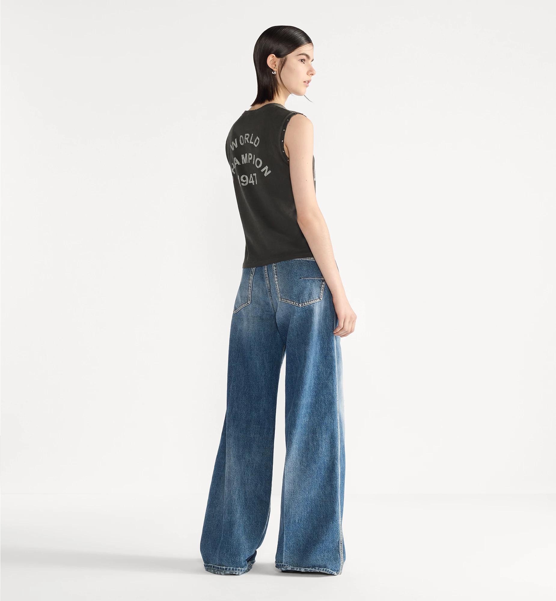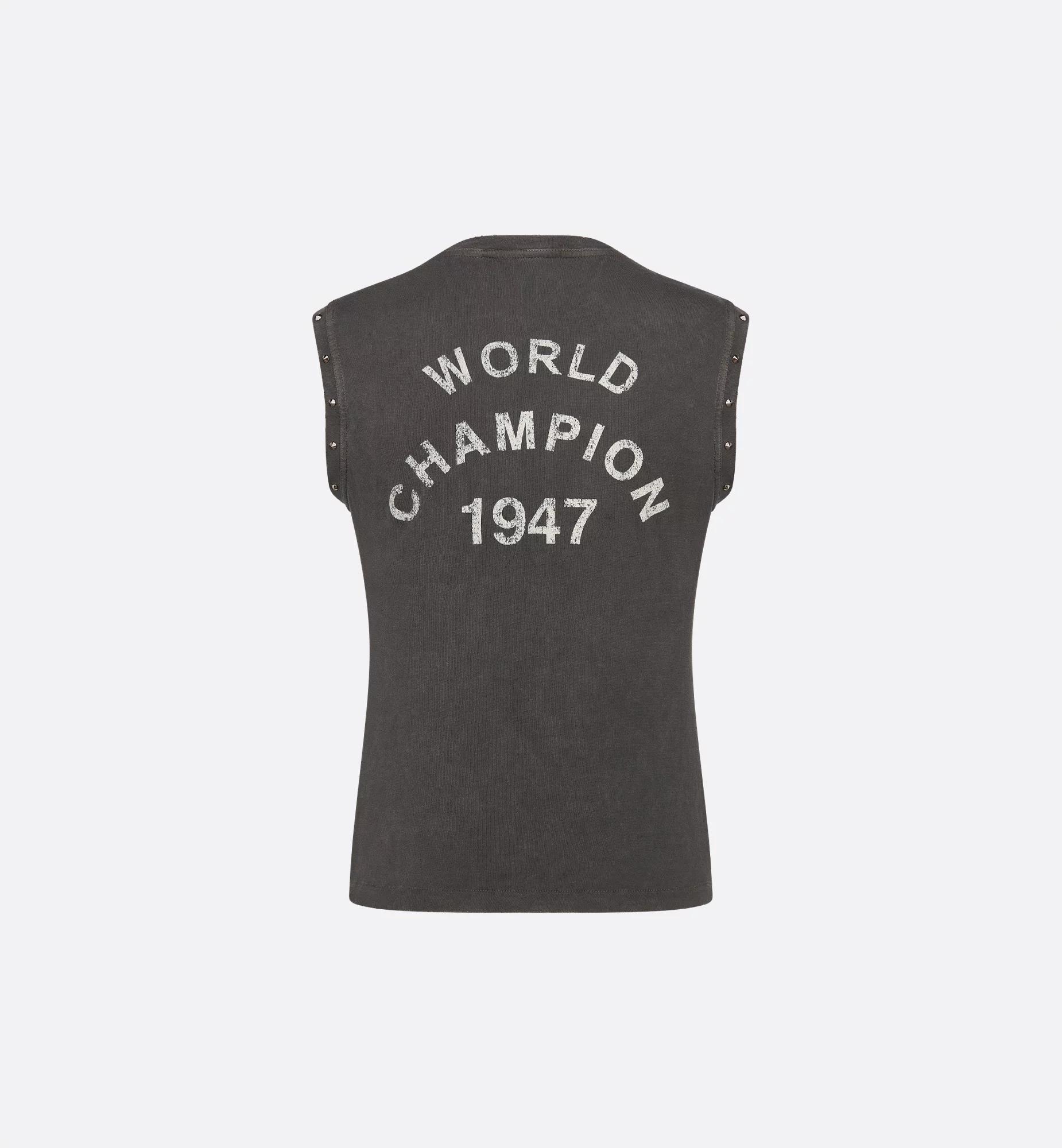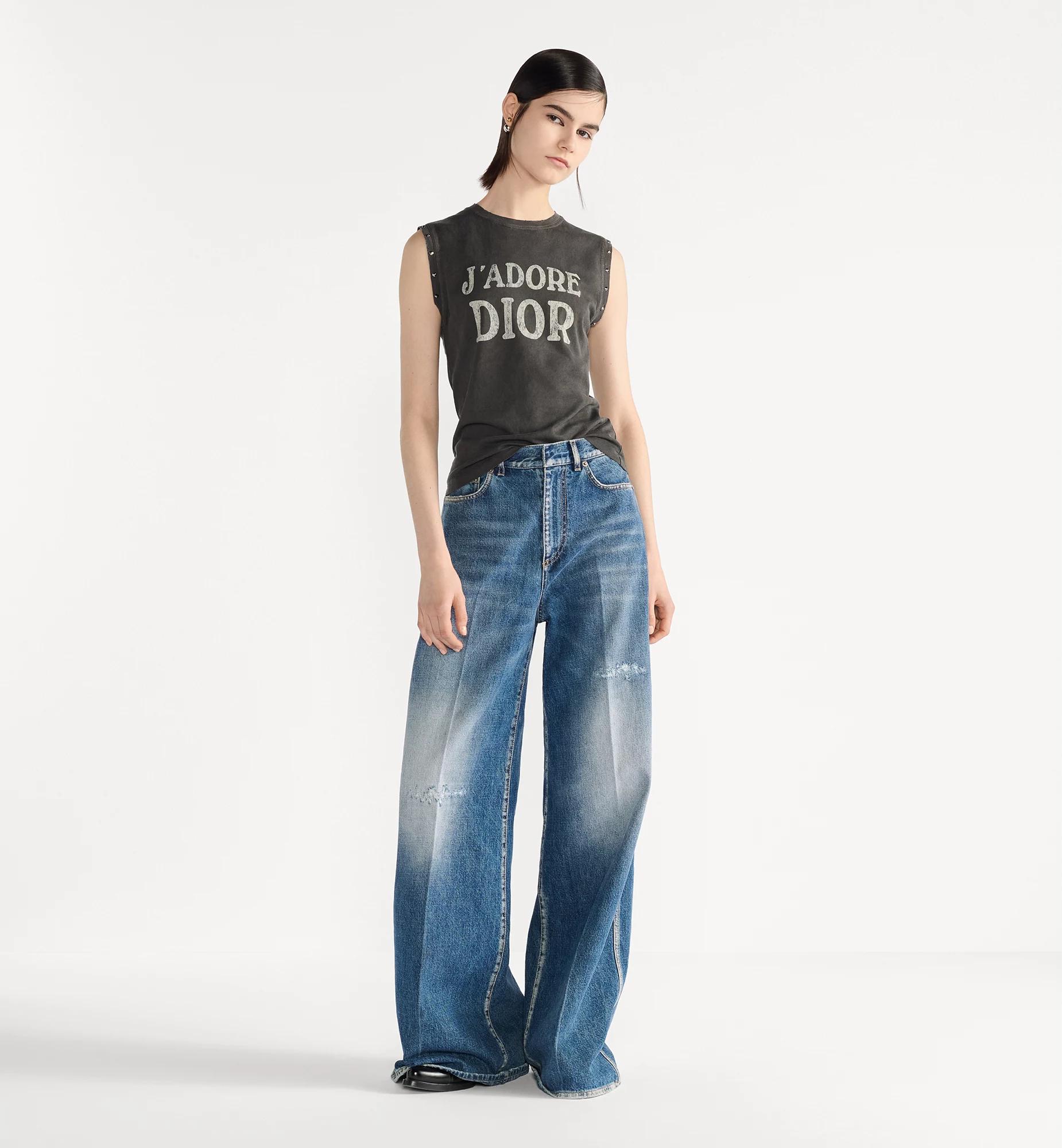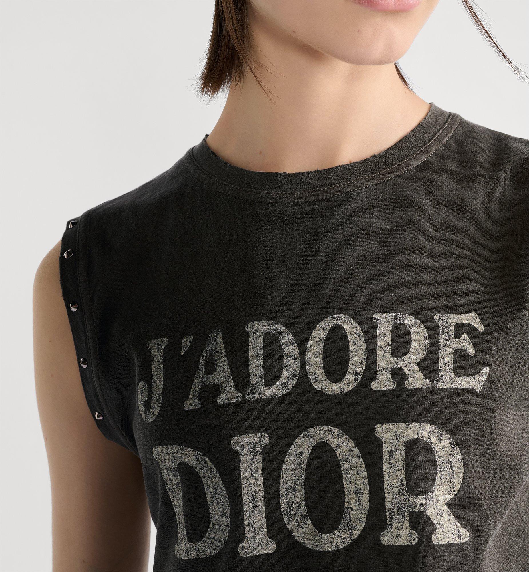 Unveiled at the Autumn-Winter 2025-2026 Fashion Show, the gray tank top features J'Adore Dior lettering. Made in cotton jersey, it showcases a fitted silhouette accented by metal studs embellishing the armholes. The tank top will complete a multitude of styles in any season. J'Adore Dior lettering. Metal studs on the armholes. Unlined. 100% cotton. Made in Italy. Treat with extra care and gently dry clean