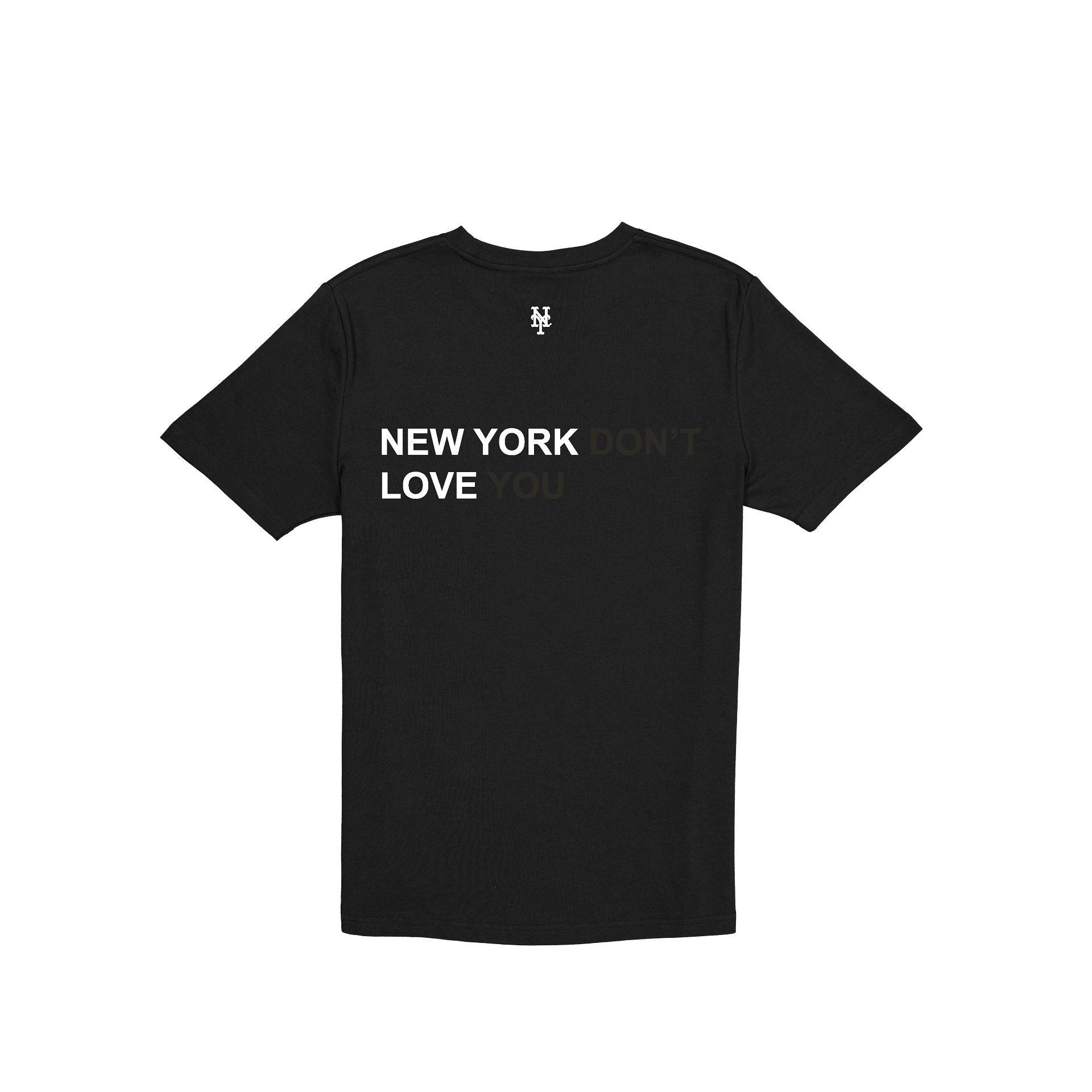 The J-Frost x New York Mets Black T-Shirt features a screen-printed Mets logo at the left chest with a New York Don't Love You wordmark and team logo at the rear.Fabric: 100% Cotton