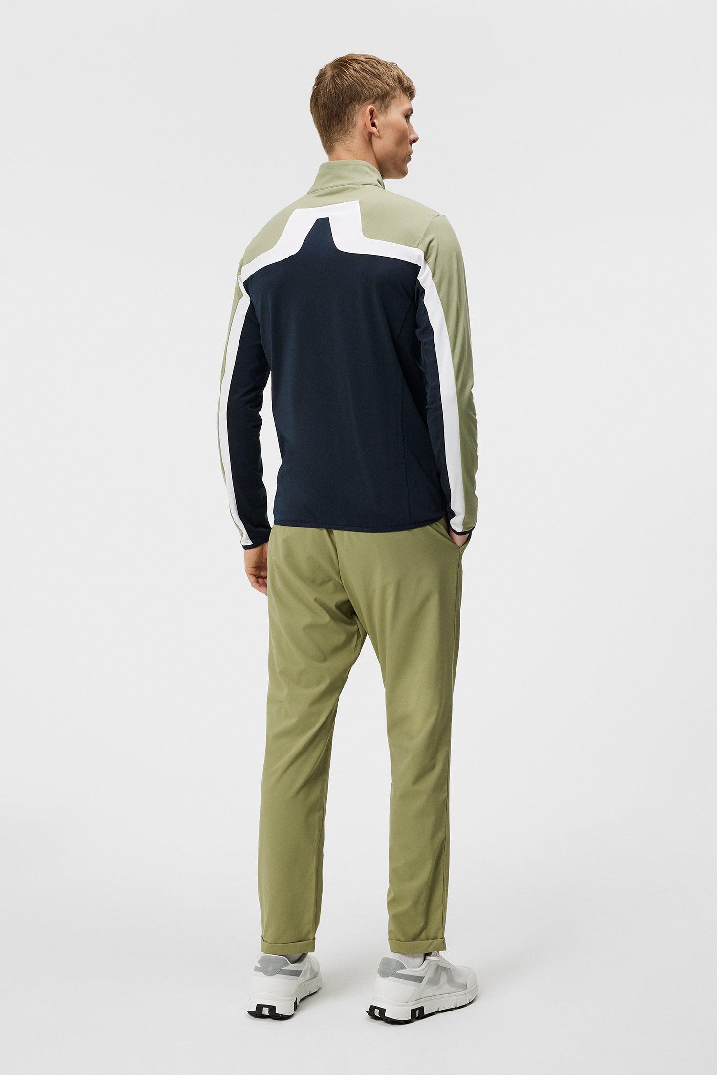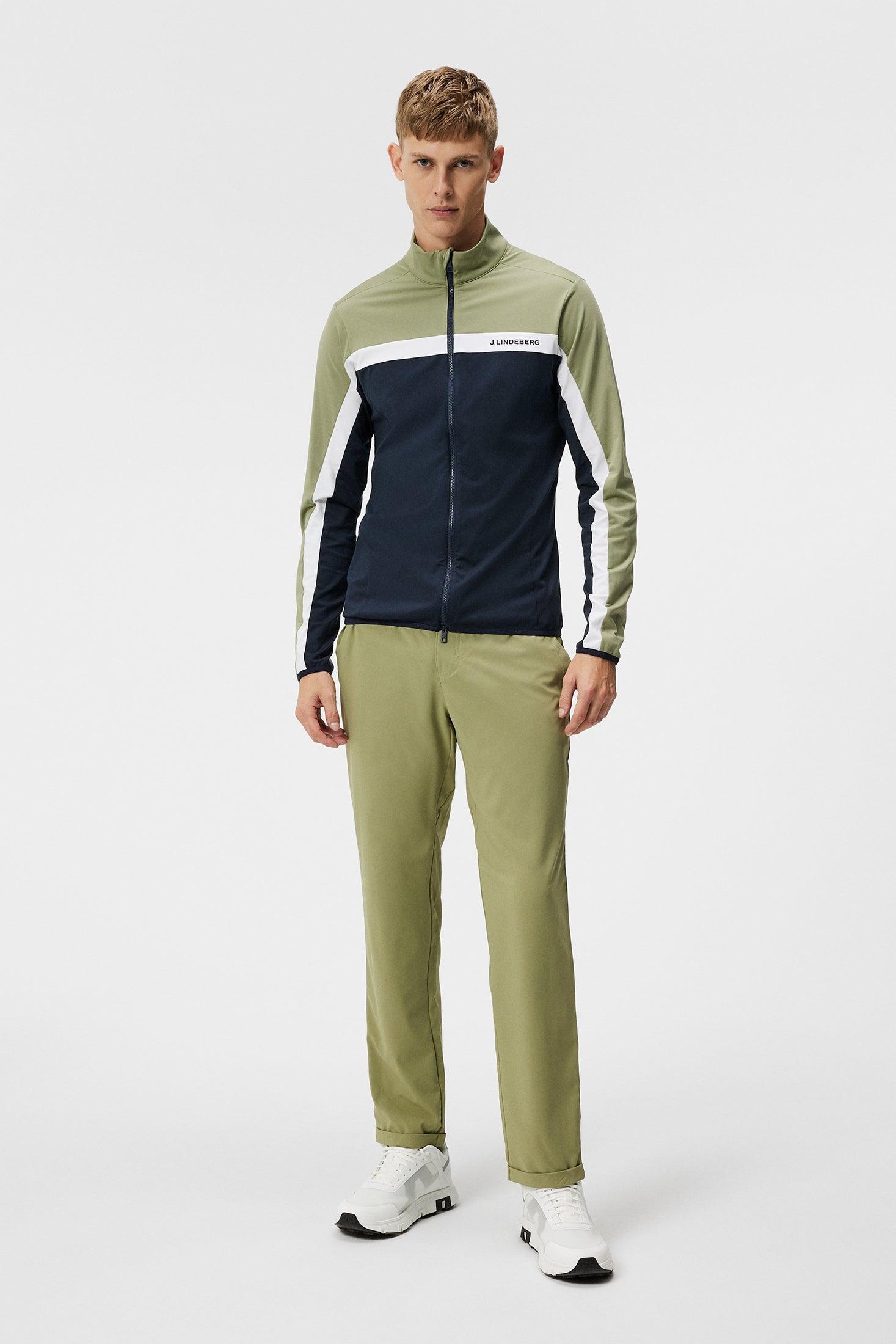 The J Lindeberg Jarvis Mid Layer Zip up Jacket is the perfect combination of style and performance. Made from our Light Mid fabric, this iconic piece features a two-way zipper with a branded logo puller, and showcases J.Lindeberg embroidery on the chest. It also boasts a sophisticated design with a strategically inserted Bridge logo at the back, creating a cut-and-sewn panel. To ensure a snug fit, the hem and cuffs are made with branded elastic edge tape, while the brushed interior provides both comfort and warmth. Engineered for optimal performance, it excels in moisture transportation, fast drying, and offers excellent stretch for unrestricted movement.