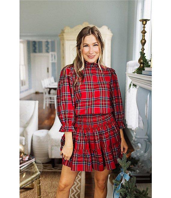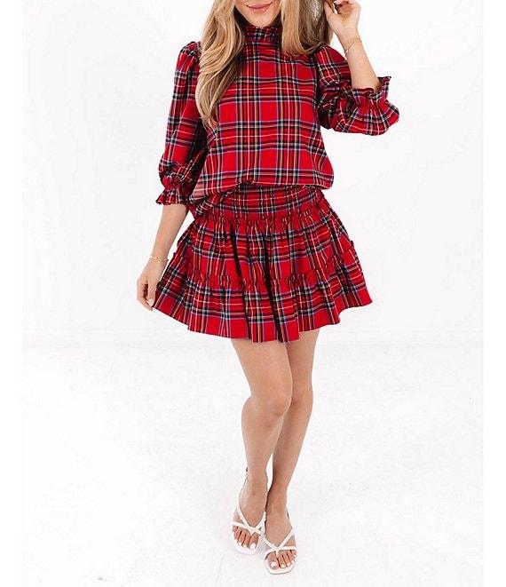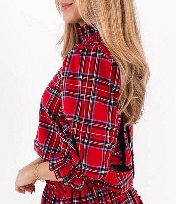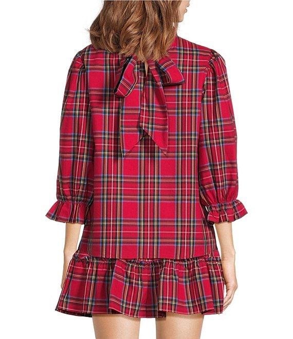 J.Marie Hollin Woven 3/4 Sleeve Plaid Top