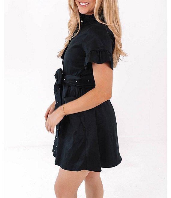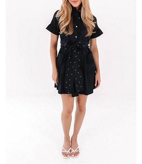 J.Marie Liv Boyfriend Pearl Detail Tie Mini Dress