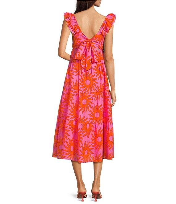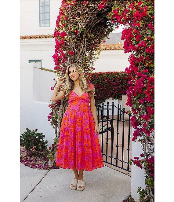 J.Marie Mara Floral V-Neck Ruffle Sleeve Midi A-Line Dress