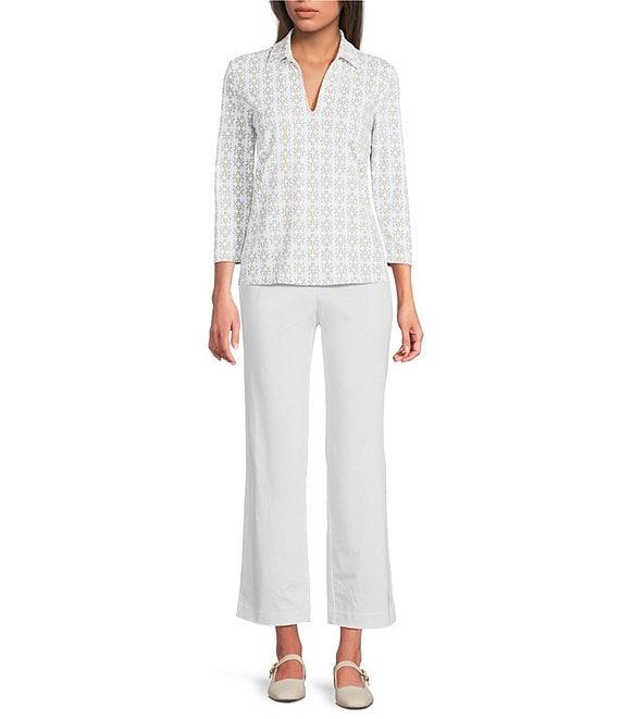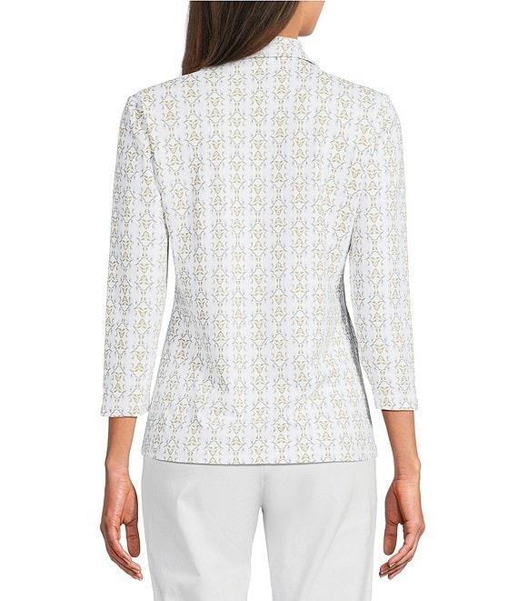 J.McLaughlin Aida Printed Catalina Cloth Collared Split V-Neck 3/4 Sleeve Top