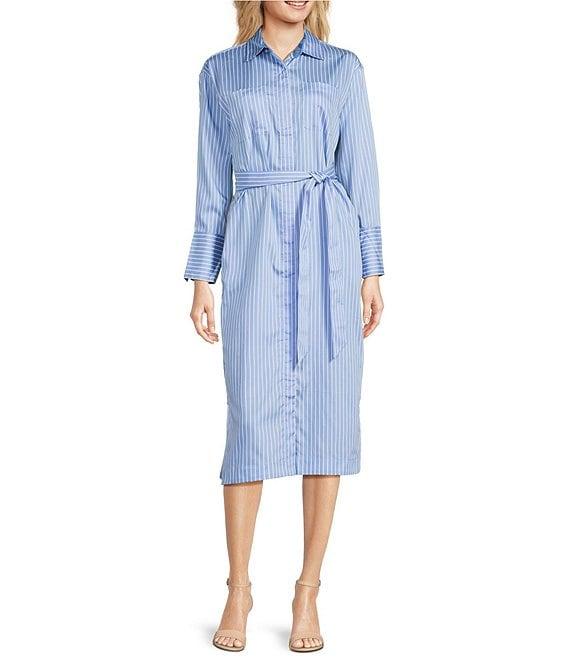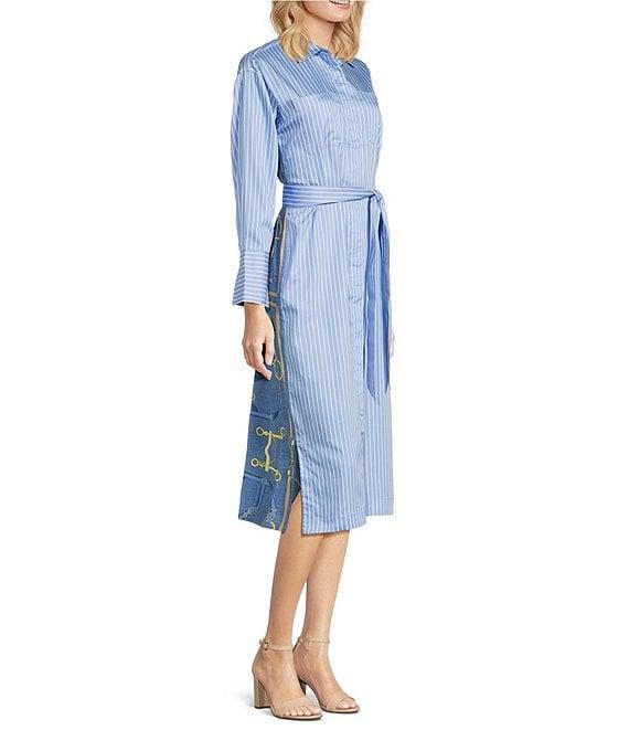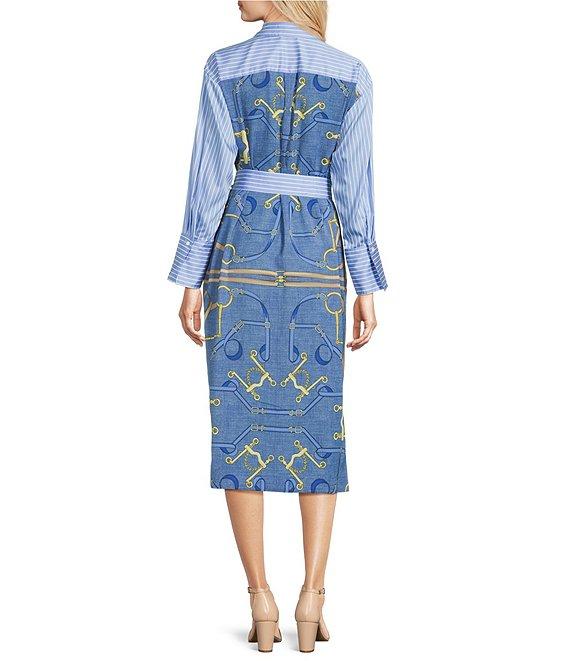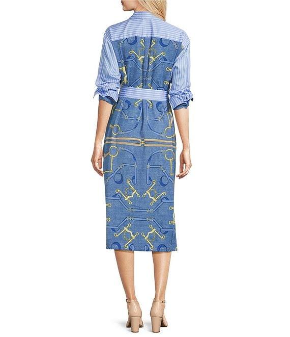J.McLaughlin Aida Printed Catalina Cloth Split V-Neck 3/4 Sleeve Belted Midi Dress