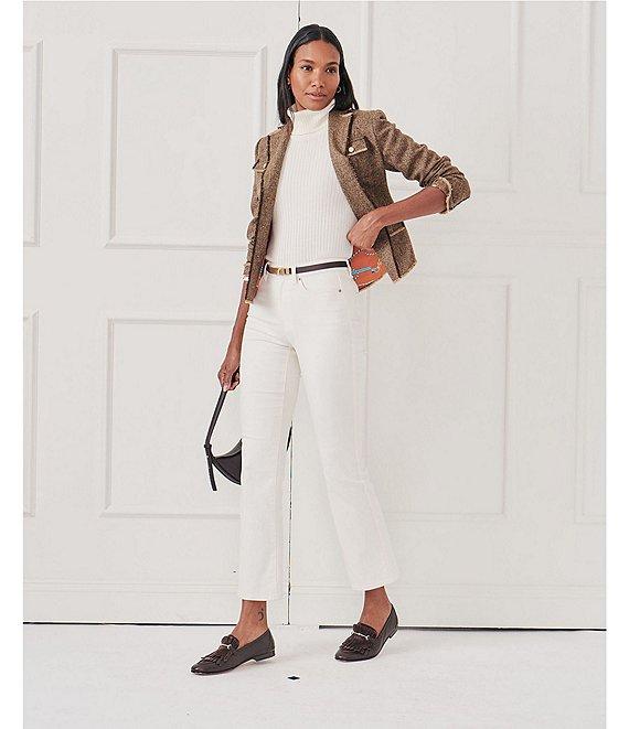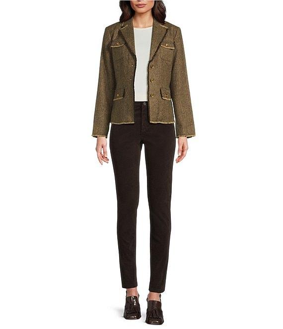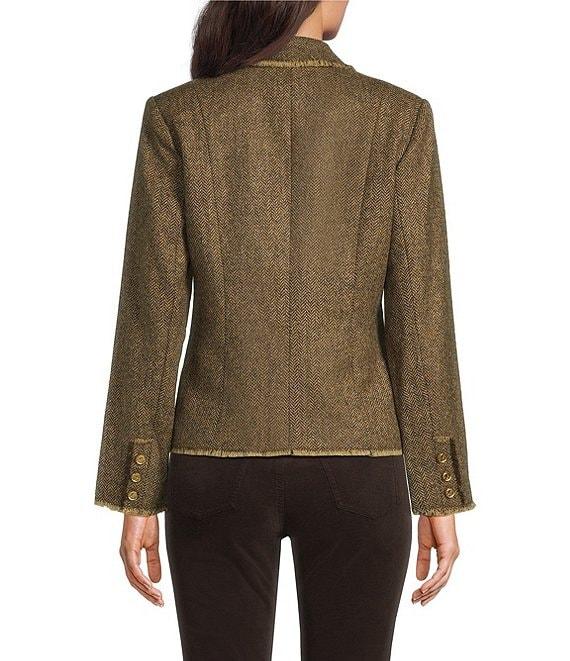 From J.McLaughlin, this jacket features: Herringbone tweed wool fabrication Notch collar neckline Long sleeves Front button flap pockets Straight hem Lined 3-button front closure Approx. 23.5" length Wool; lining: polyester Dry clean Imported.