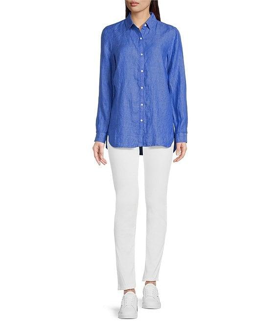 From J.McLaughlin, this blouse features: Linen fabrication Point collar Long sleeves with button cuffs Relaxed fit Shirttail hemline Button front closure Approx: 29.5" center back length Linen Machine wash/line dry Imported.