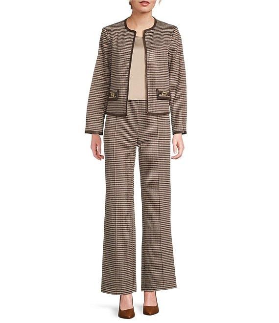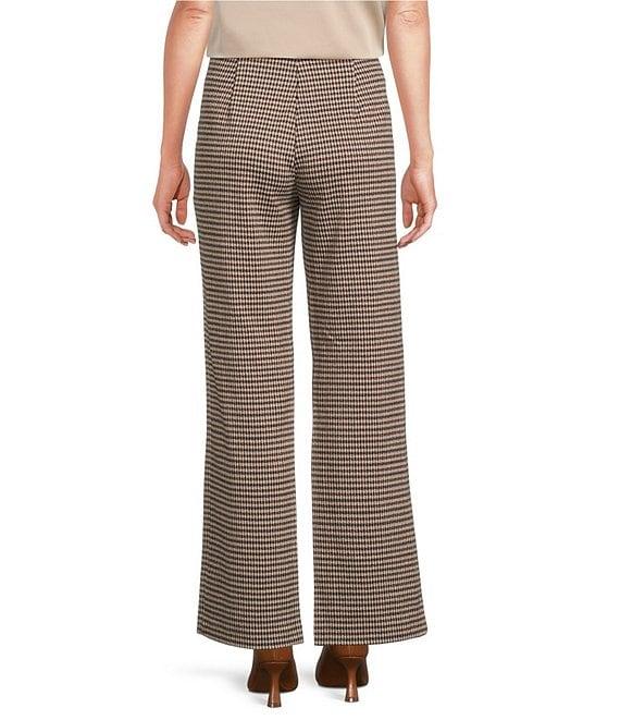 J.McLaughlin Calder Knit Plaid Print Flat Front Pintuck Wide Leg Pants