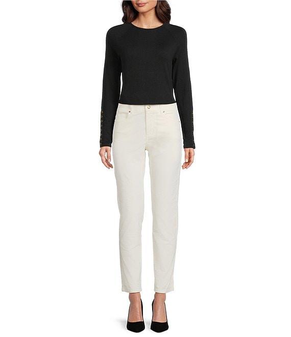 From J.McLaughlin, this sweater features: Lightweight fine gauge sweater knit Crew neckline Long sleeves with enamel button trim cuffs and raglan shoulders Straight hemline Pullover construction Approx. 24.5" length Cotton/modal Hand wash cold/flat dry Imported.