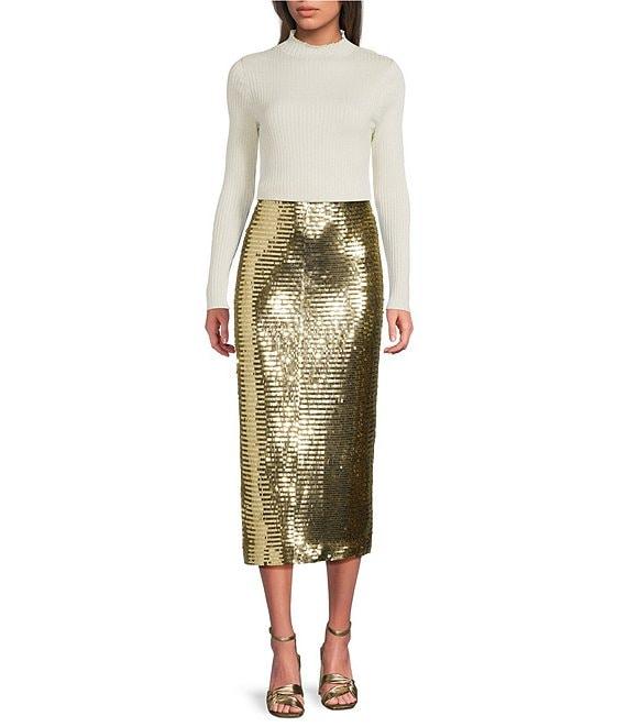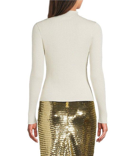 J.McLaughlin Maeve Metallic Ribbed Knit Mock Neck Bracelet Sleeve Sweater