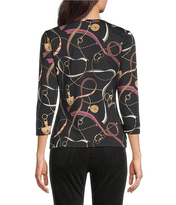 J.McLaughlin Signature Printed Knit Crew Neck 3/4 Sleeve Tee