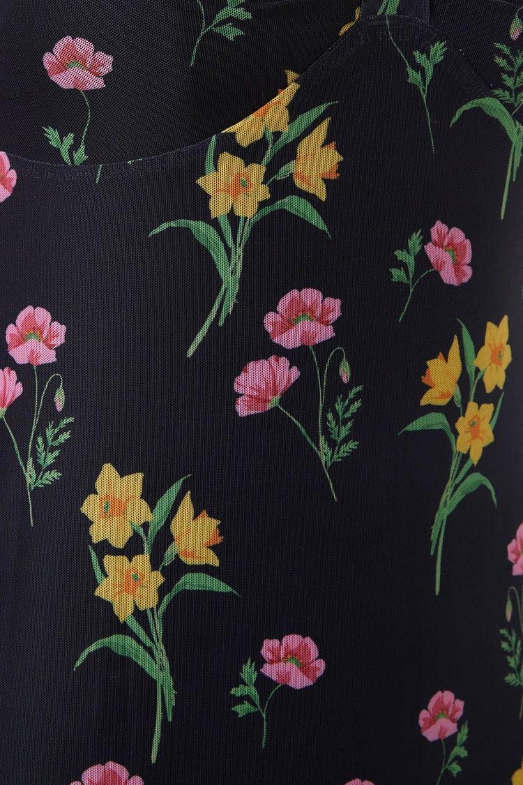 Step back into the '90s with a fashionable twist in the Floral Mesh Dress from Princess Highway, where nostalgia blooms anew amidst daffodils and carnations. This dress is a poetic ode to the decade, with an empire line style bodice that gracefully defines the waist before cascading into a semi-fitted skirt half. Short capped sleeves flutter at your shoulders, adding a touch of whimsy and freedom. The V-shaped neckline offers a canvas for both modesty and allure, inviting a playful peek at what lies beneath. Crafted from a polyester elastane blend, this dress marries comfort with durability, ensuring your throwback look stands the test of time. Donned in black, it's a versatile backdrop that makes the floral pattern pop, perfect for coffee dates, casual strolls through the town, or those evenings when you feel like catching live poetry or music in a cozy corner of the city.100% VISCOSEGentle Cold Hand Wash Separately Do Not Bleach Or Soak Do Not Tumble Dry Line Dry In Shade Cool Iron On Reverse If RequiredImported