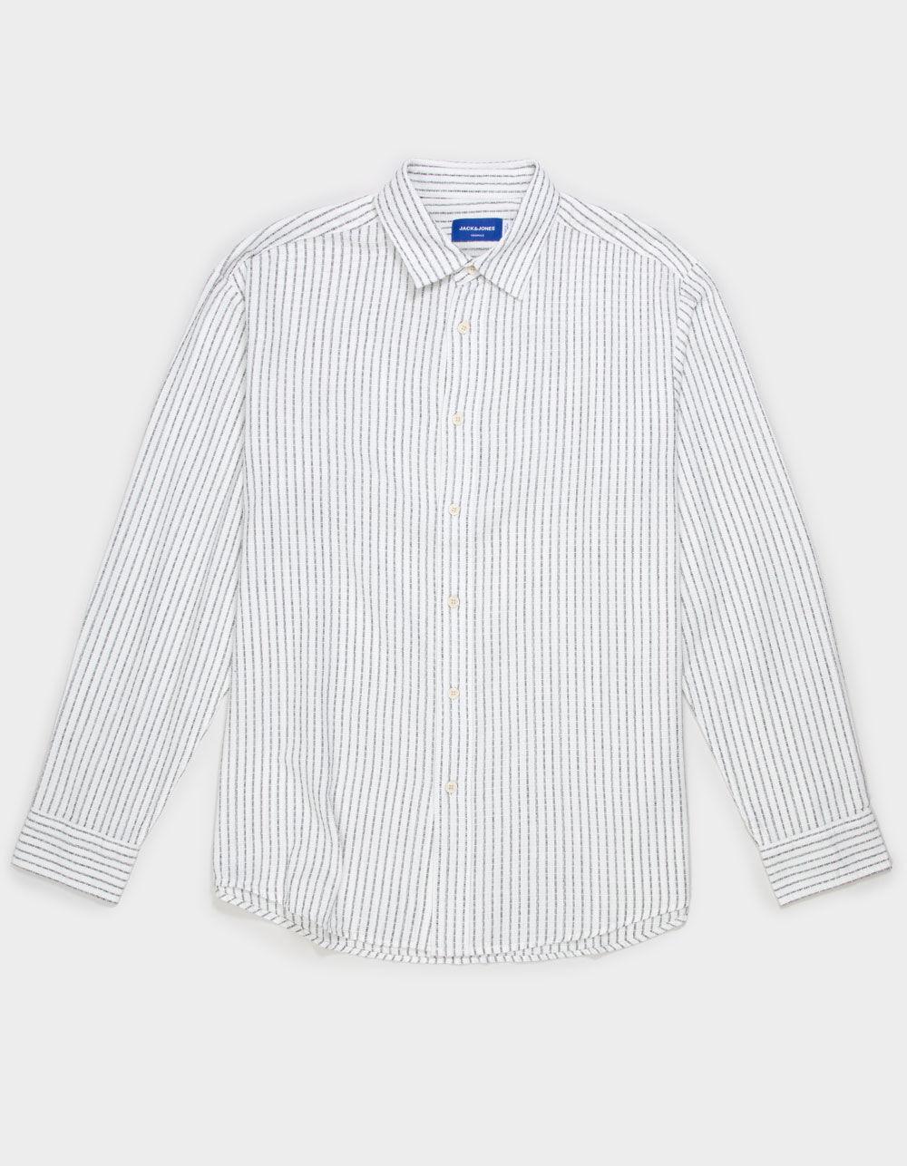JACK & JONES James Split Stripe Mens Button Up Long Sleeve Shirt - WHITE/MULTI