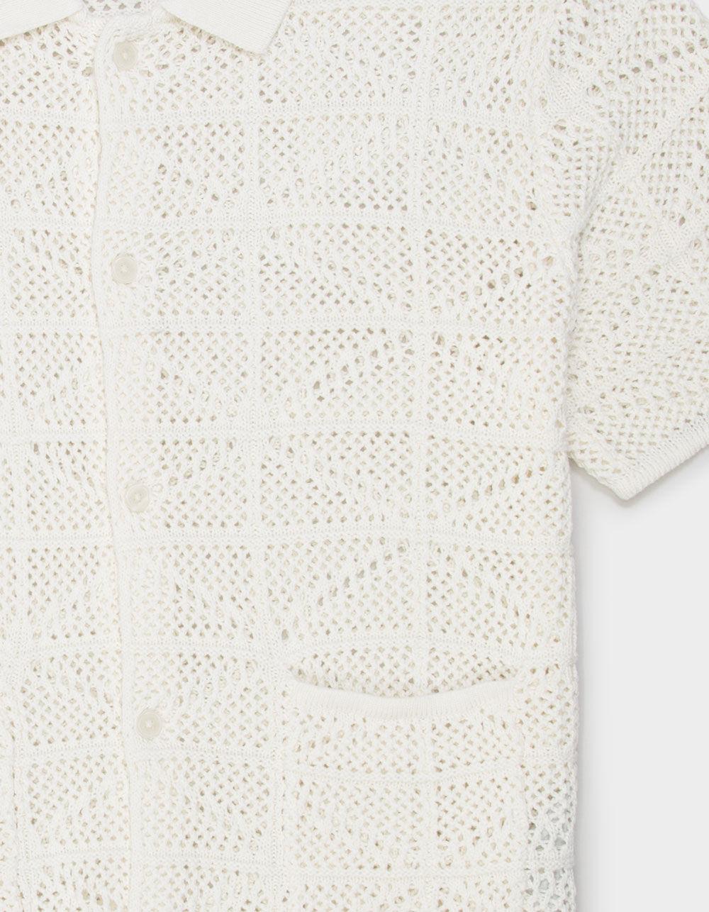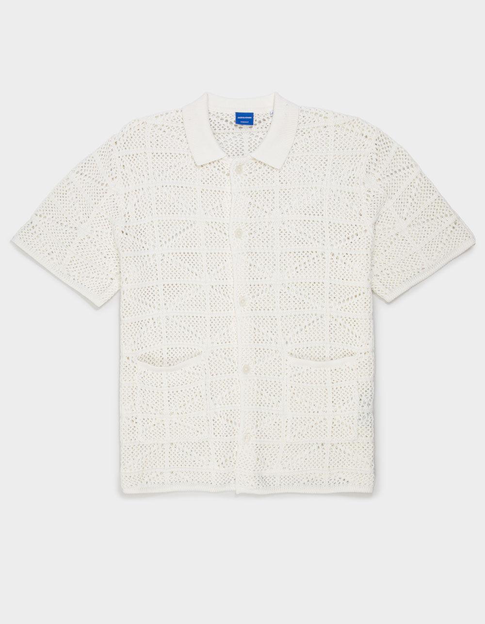 JACK & JONES Retro Crochet Mens Oversized Button Up Shirt - NATURAL