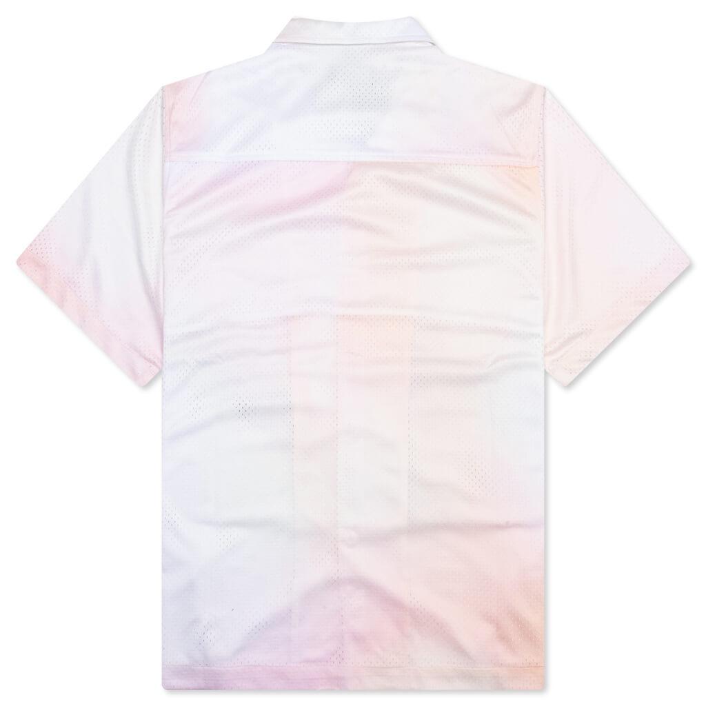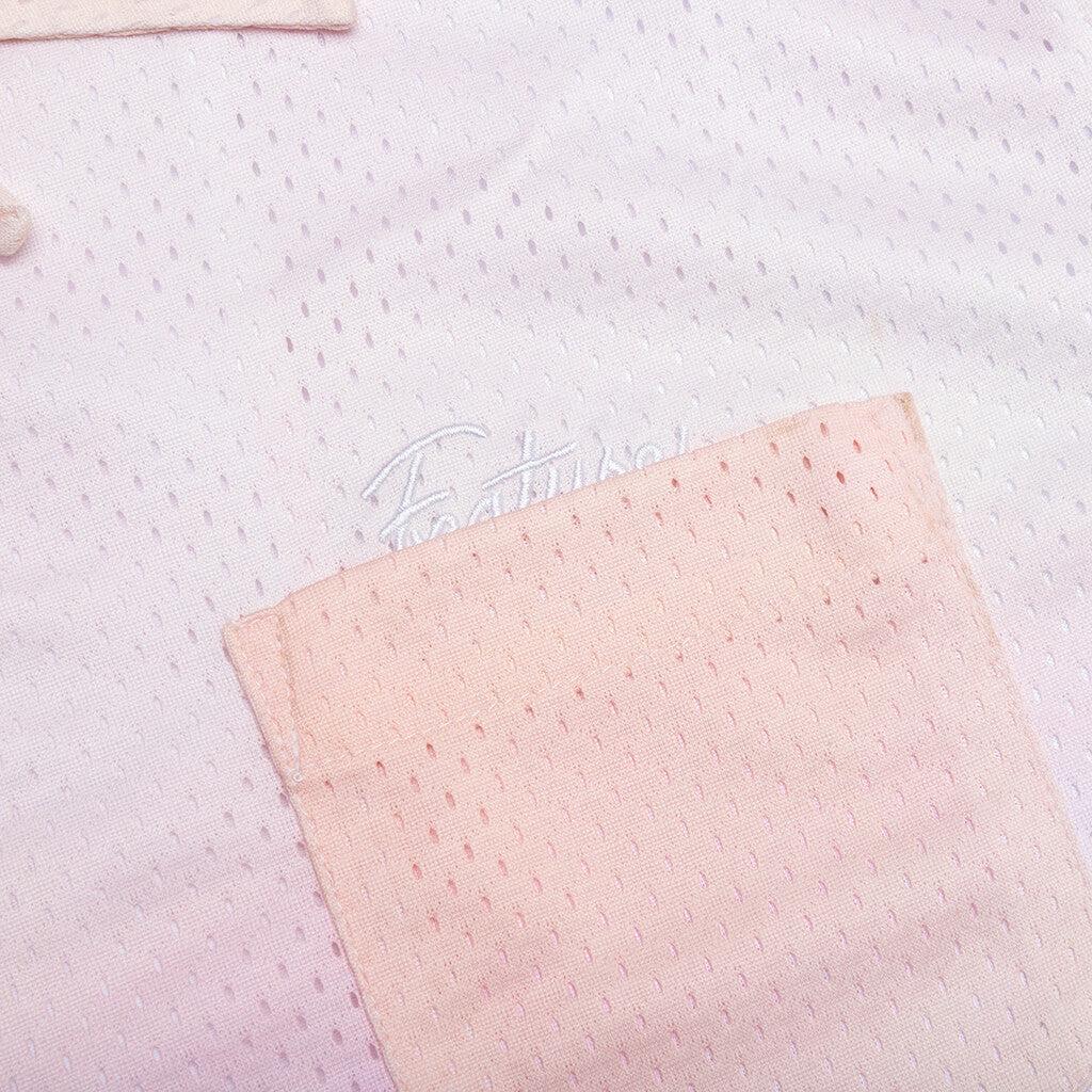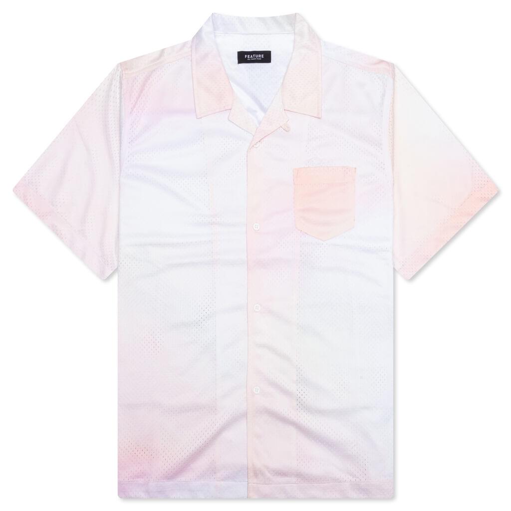 The Jackson Mesh Shirt in Desert Oasis delivers a refined balance of texture and breathability. Designed with a lightweight mesh outer and a smooth silk-like lining for elevated comfort, it features an all-over gradient pattern that adds visual depth. A camp collar, chest pocket, and button-front closure nod to timeless shirting details, while embroidered FEATURE branding at the chest completes the look. 100% Polyester Regular fit Camp collar Chest pocket Button closure Embroidered branding Style No: F071524X05