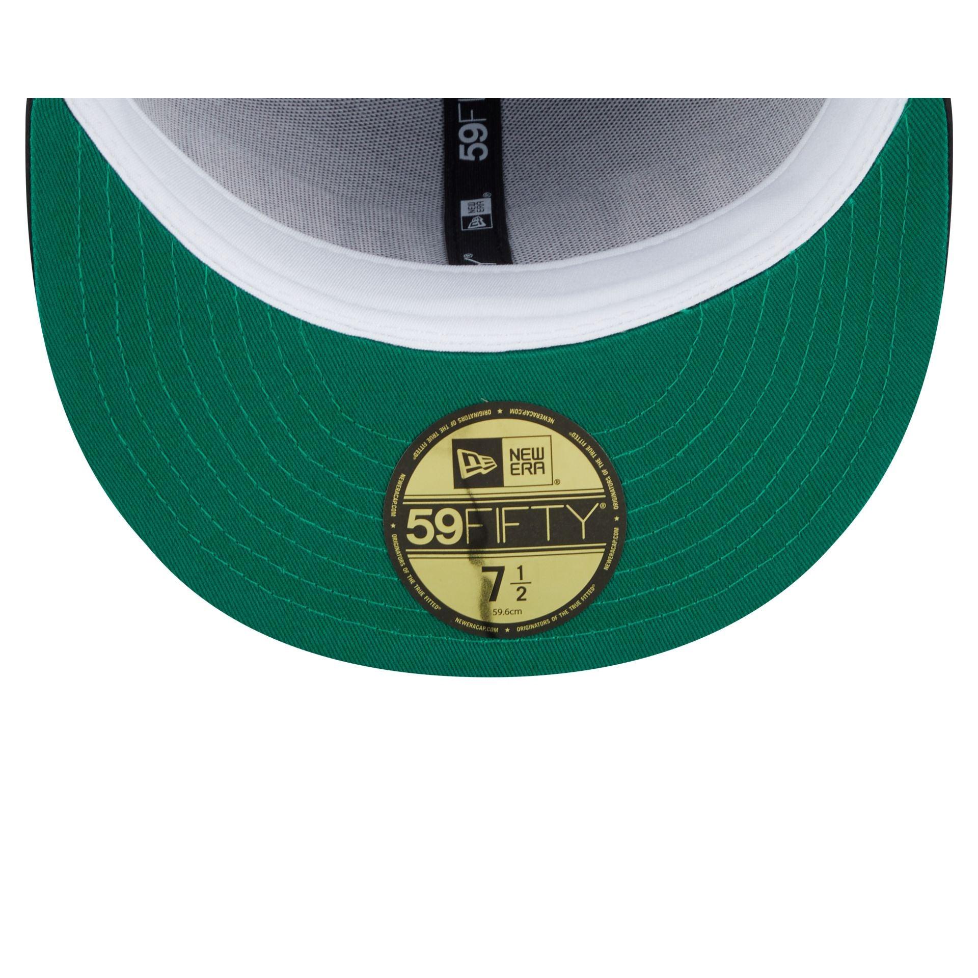 The Jacksonville Jaguars Spring Satin 59FIFTY Fitted Cap features an embroidered Jaguars wordmark at the front panels with a New Era pin at the top left panel and an NFL Shield logo at the rear. Additional details include a satin fabrication throughout, a logo at the right-wear side, and a green undervisor.