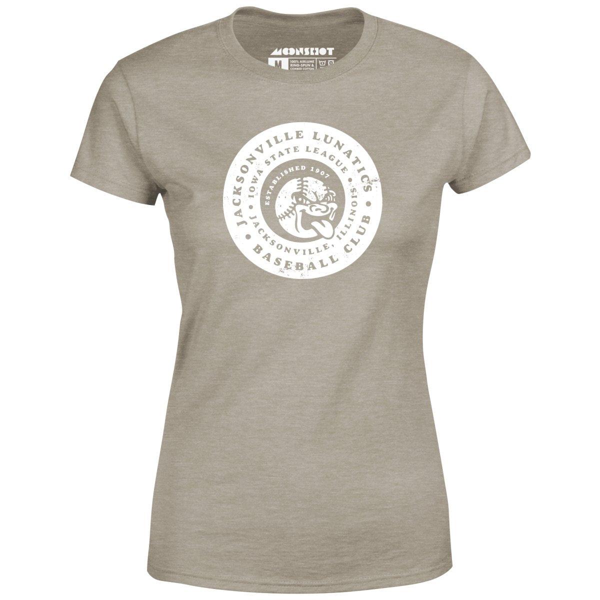 The Jacksonville Lunatics were a minor league baseball team based in Jacksonville, Illinois. They played in the Iowa State League. This design is part of our old school retro baseball tees inspired by the vintage and now defunct Minor League Baseball teams of yesteryear. Printed on our super soft 100% ringspun & combed cotton women's T-Shirt. Or upgrade to our Luxury 52/48 cotton/poly vintage heather edition for an even softer classic look. We print & ship all of our high quality graphic tees in the USA.