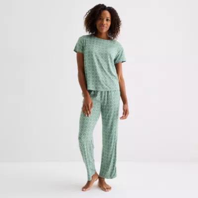 Jaclyn Womens Round Neck Short Sleeve 2-pc. Pajama Sets
