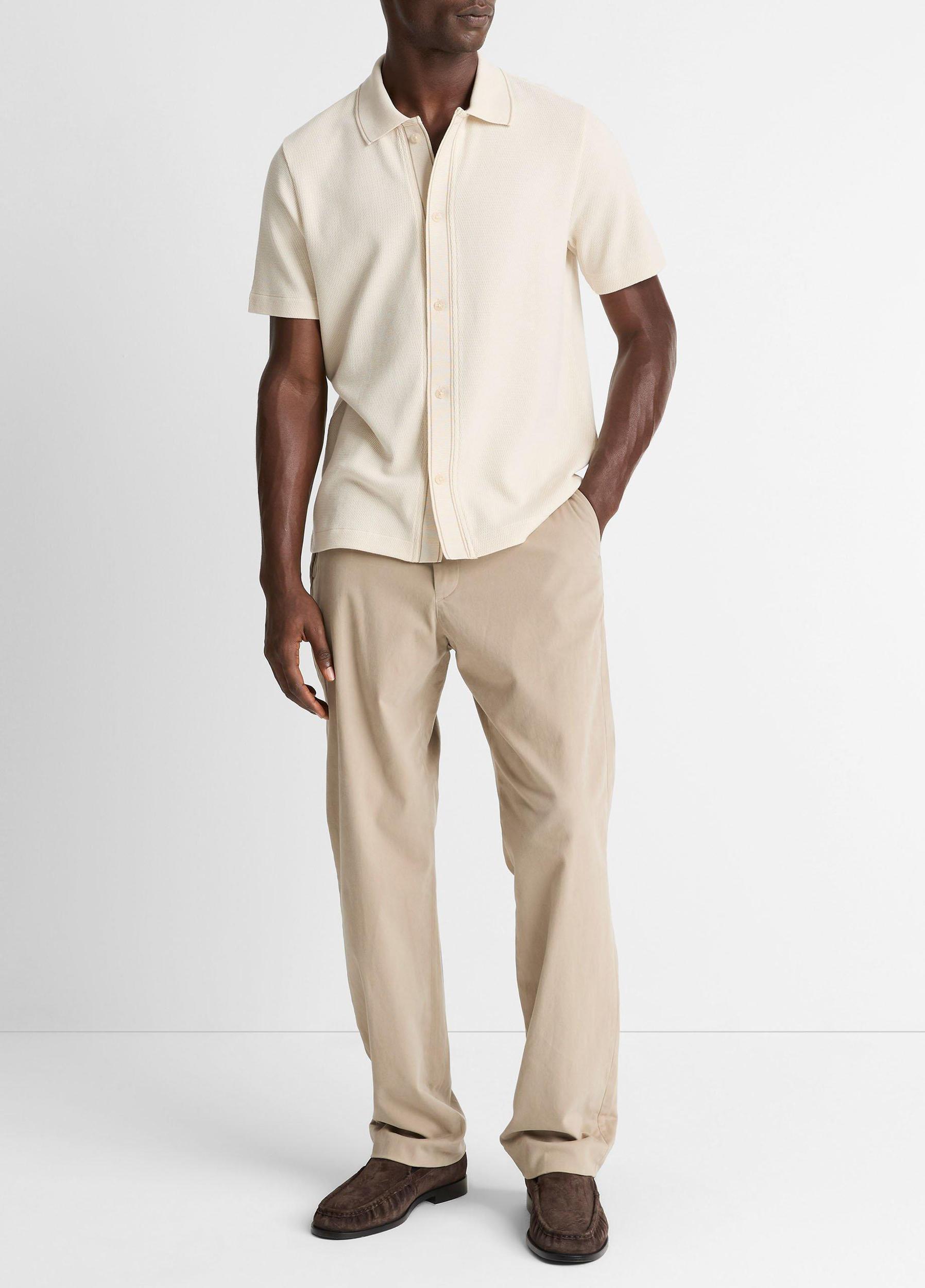 Jacquard-Knit Cotton Short-Sleeve Button-Front Shirt