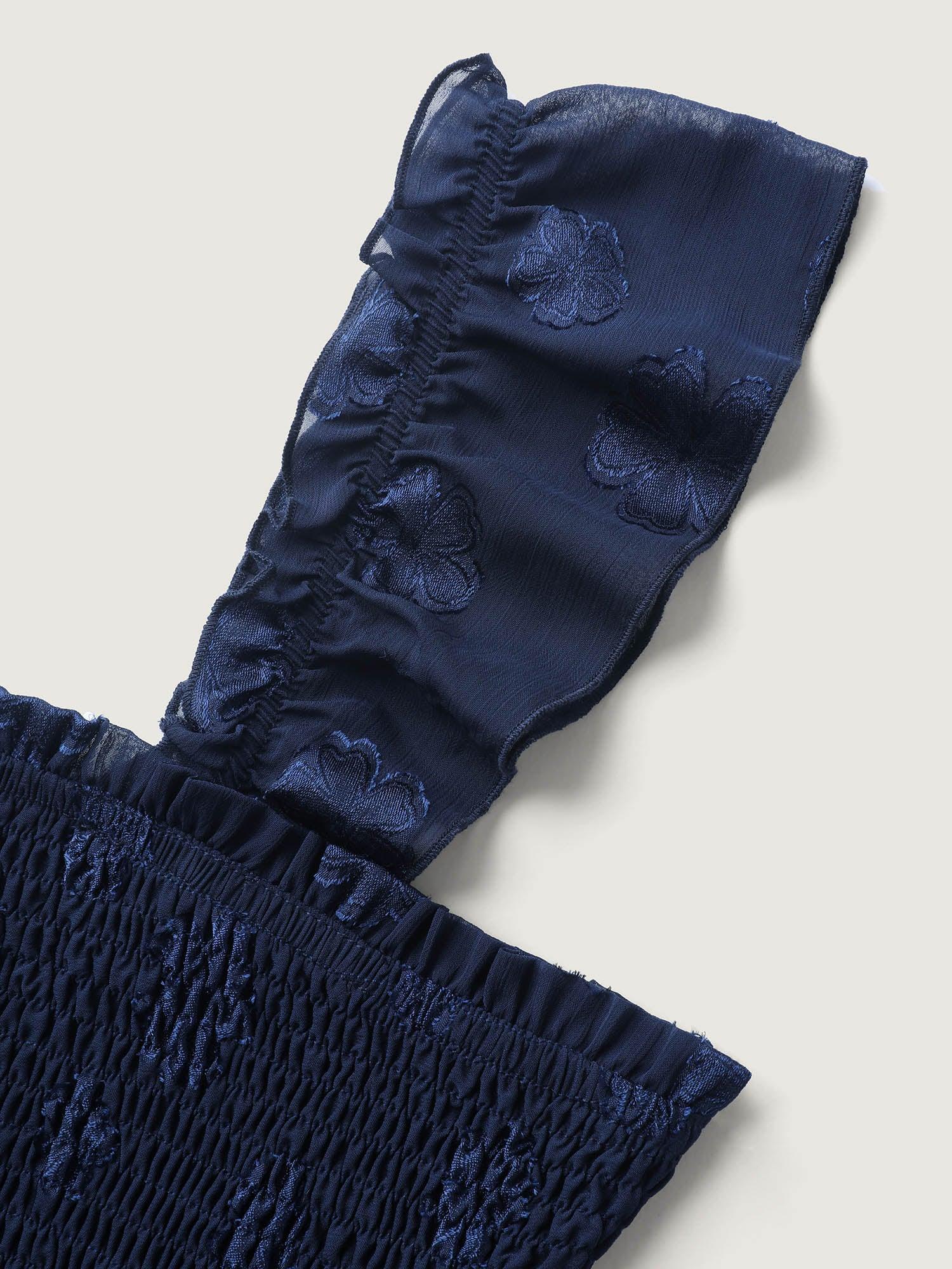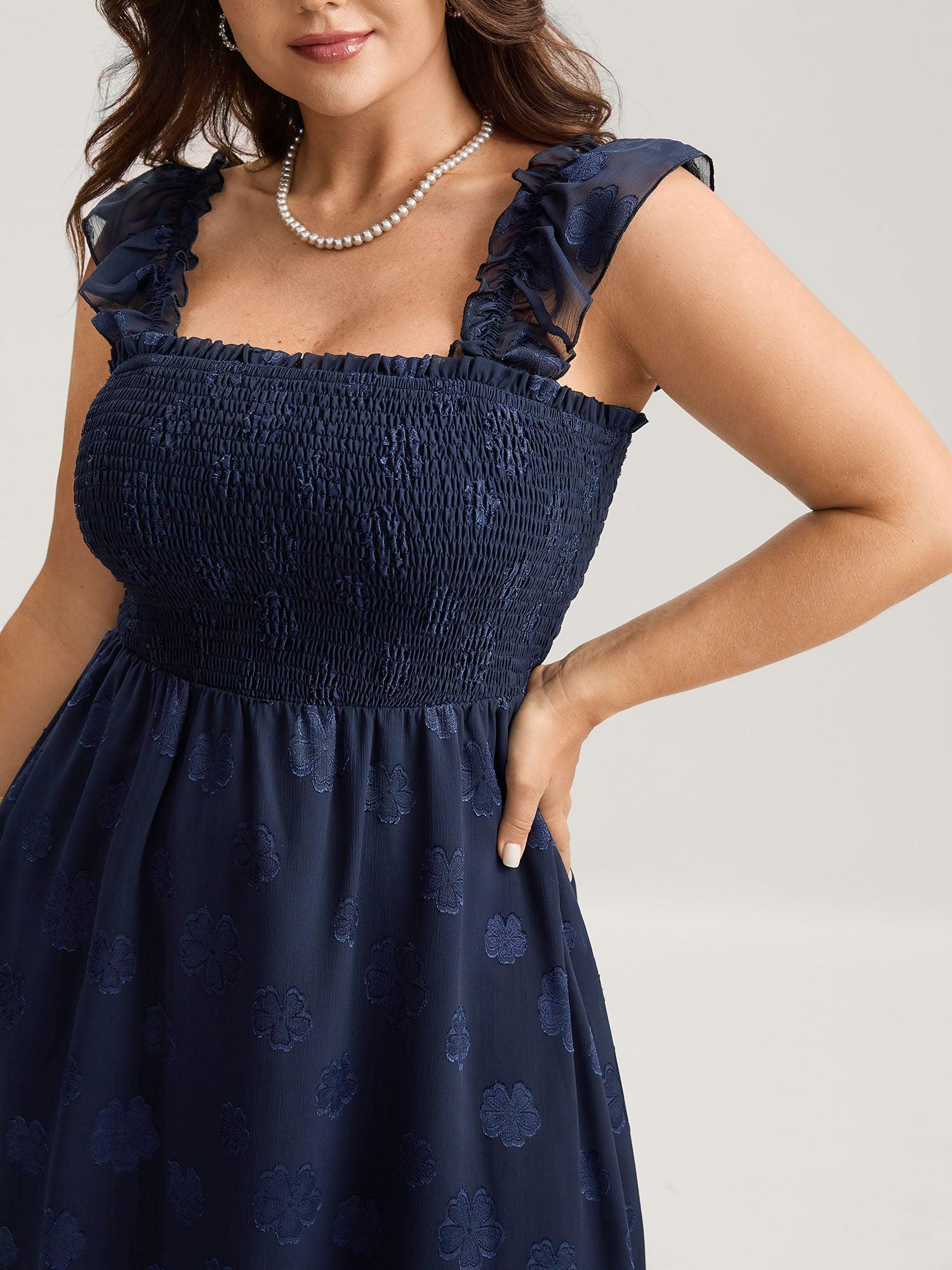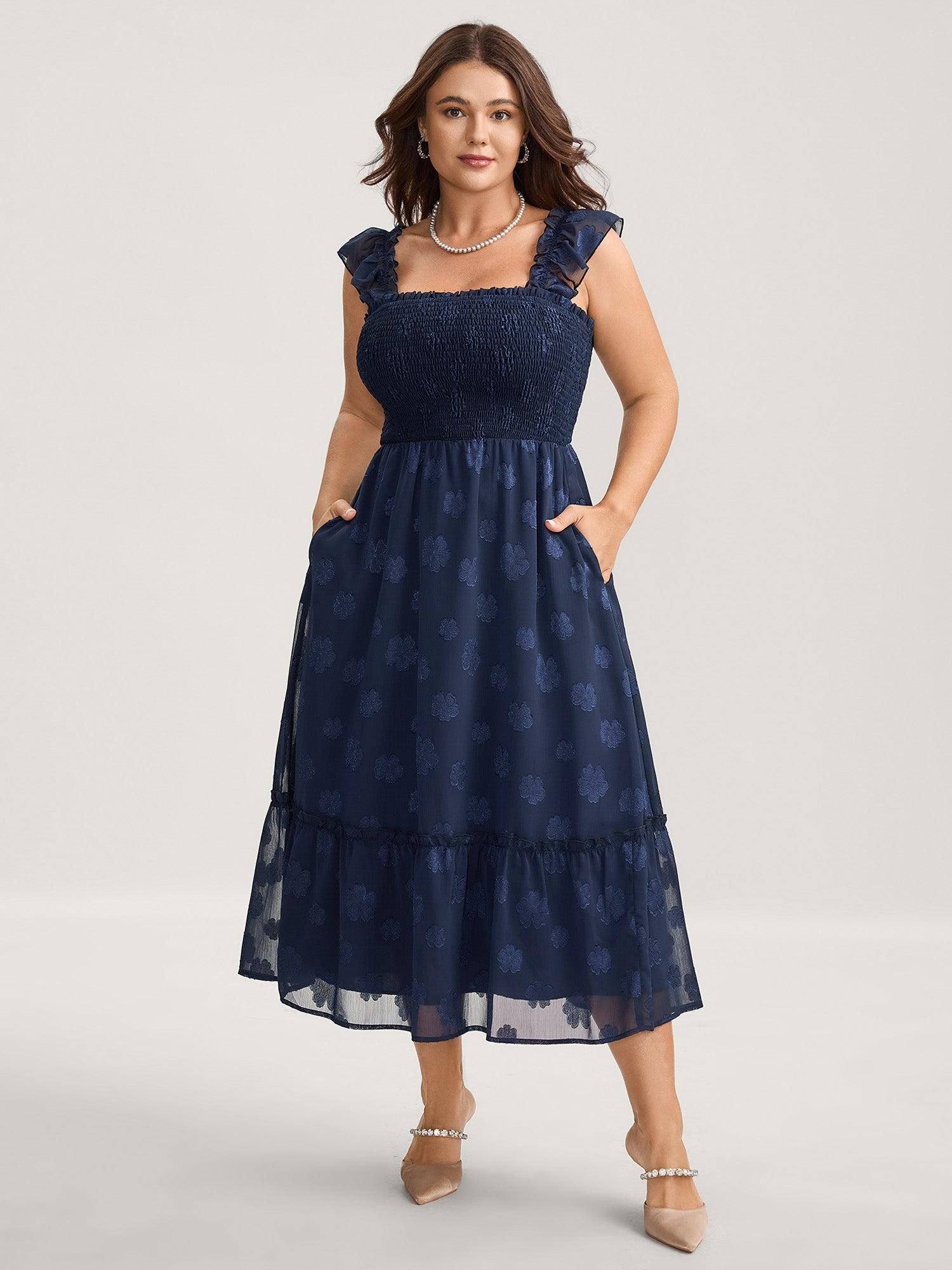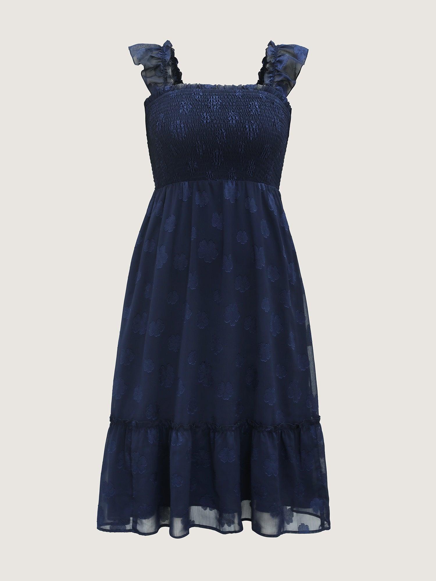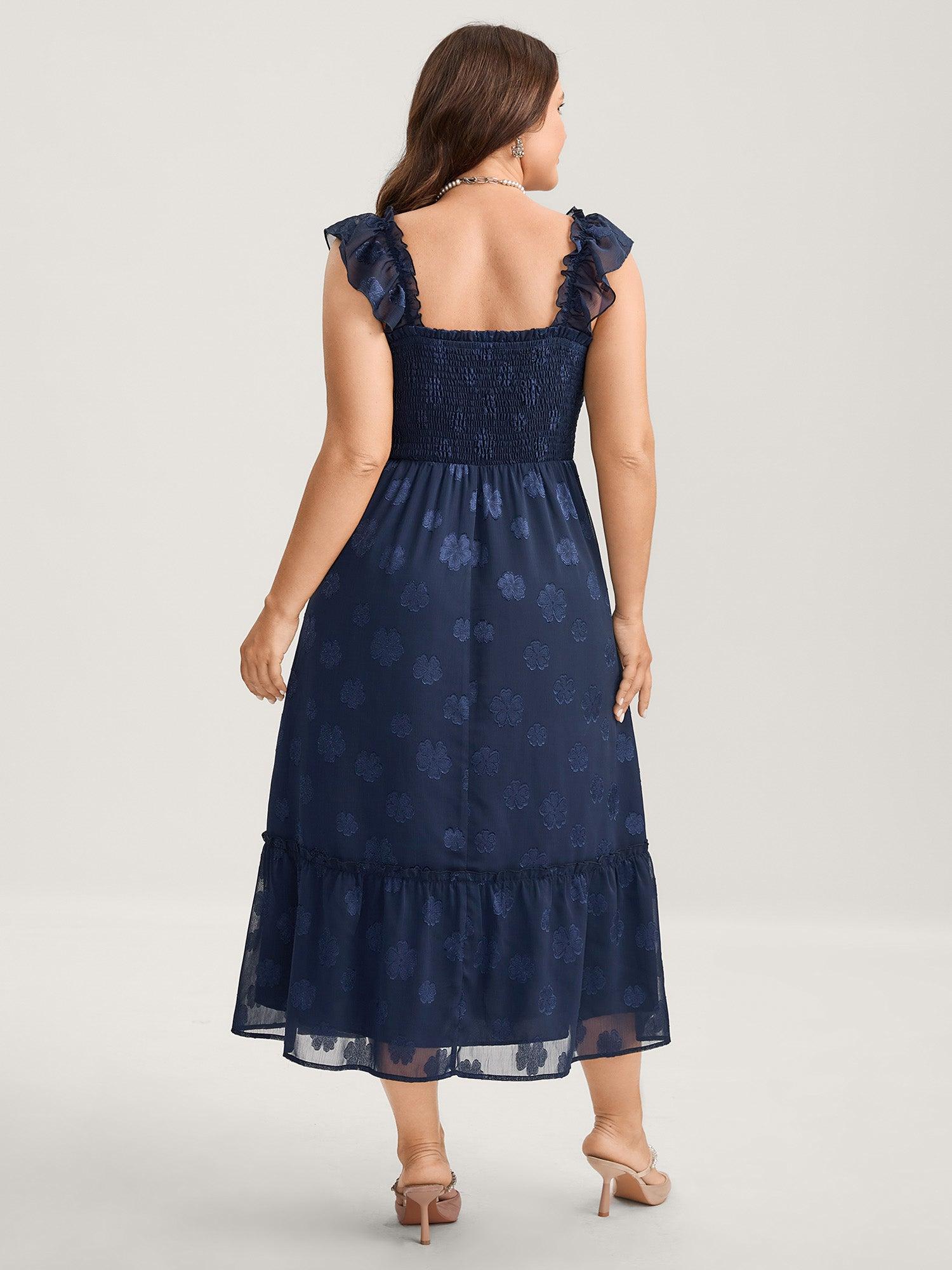 Jacquard Shirred Bodice Ruffled Midi Dress Female