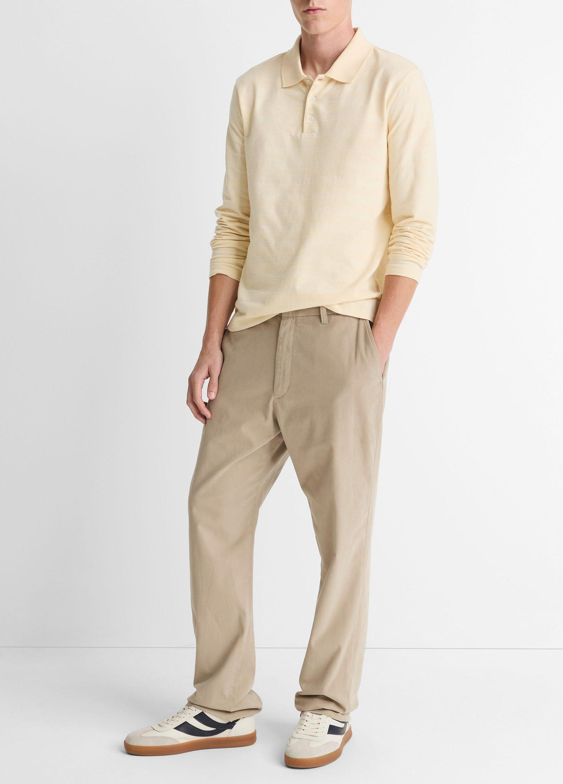 Jacquard-Stripe Cotton Long-Sleeve Polo Shirt