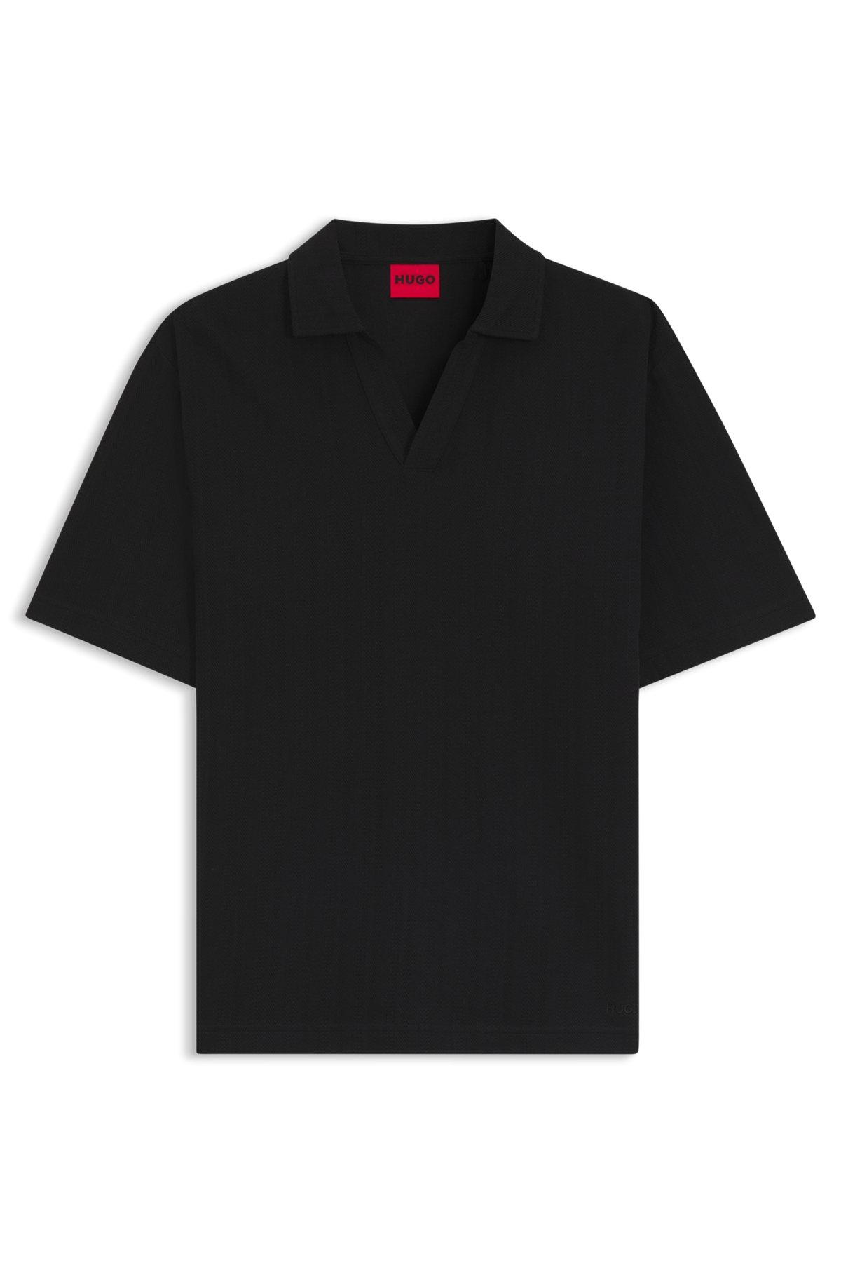 Jacquard-stripe polo shirt with Johnny collar