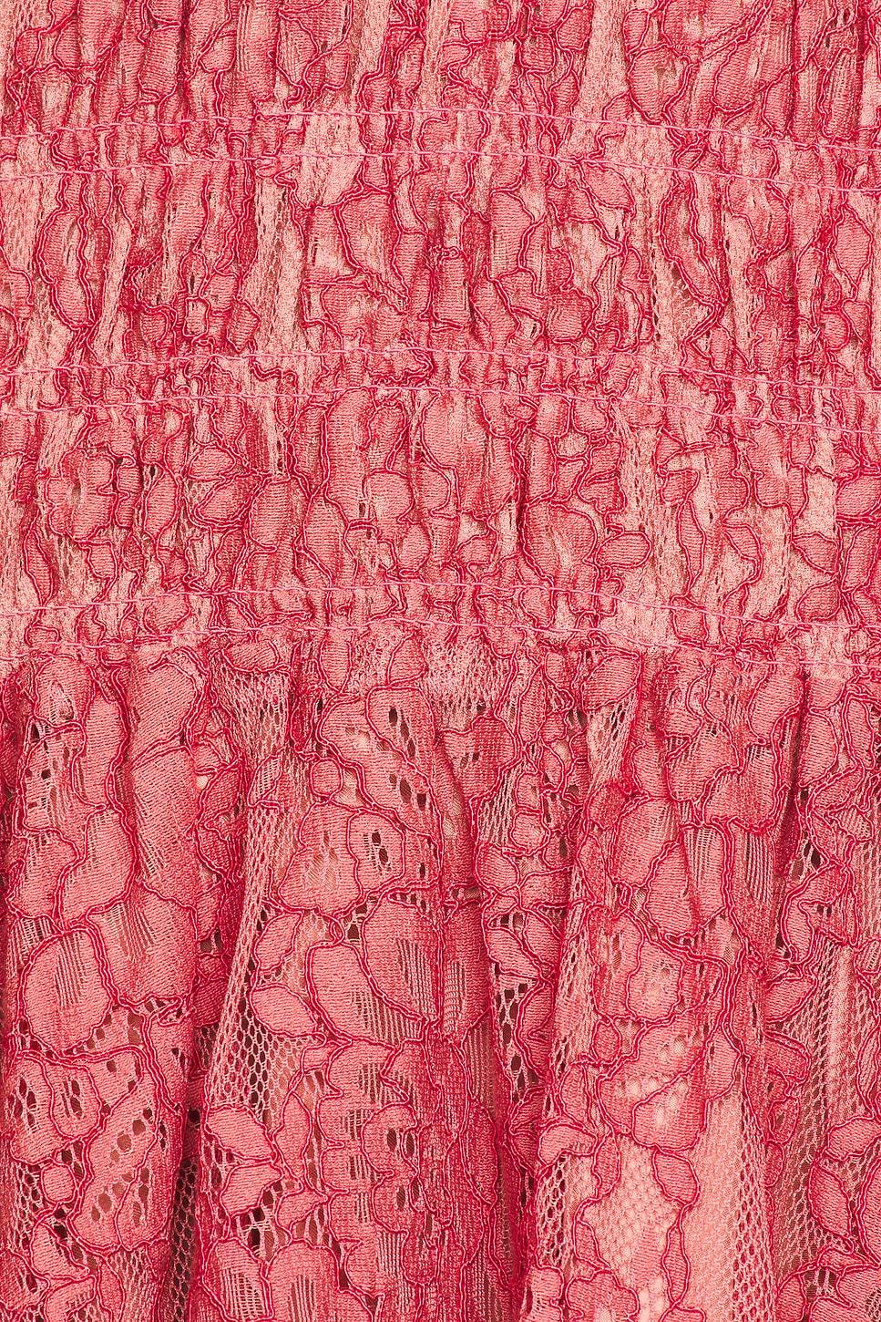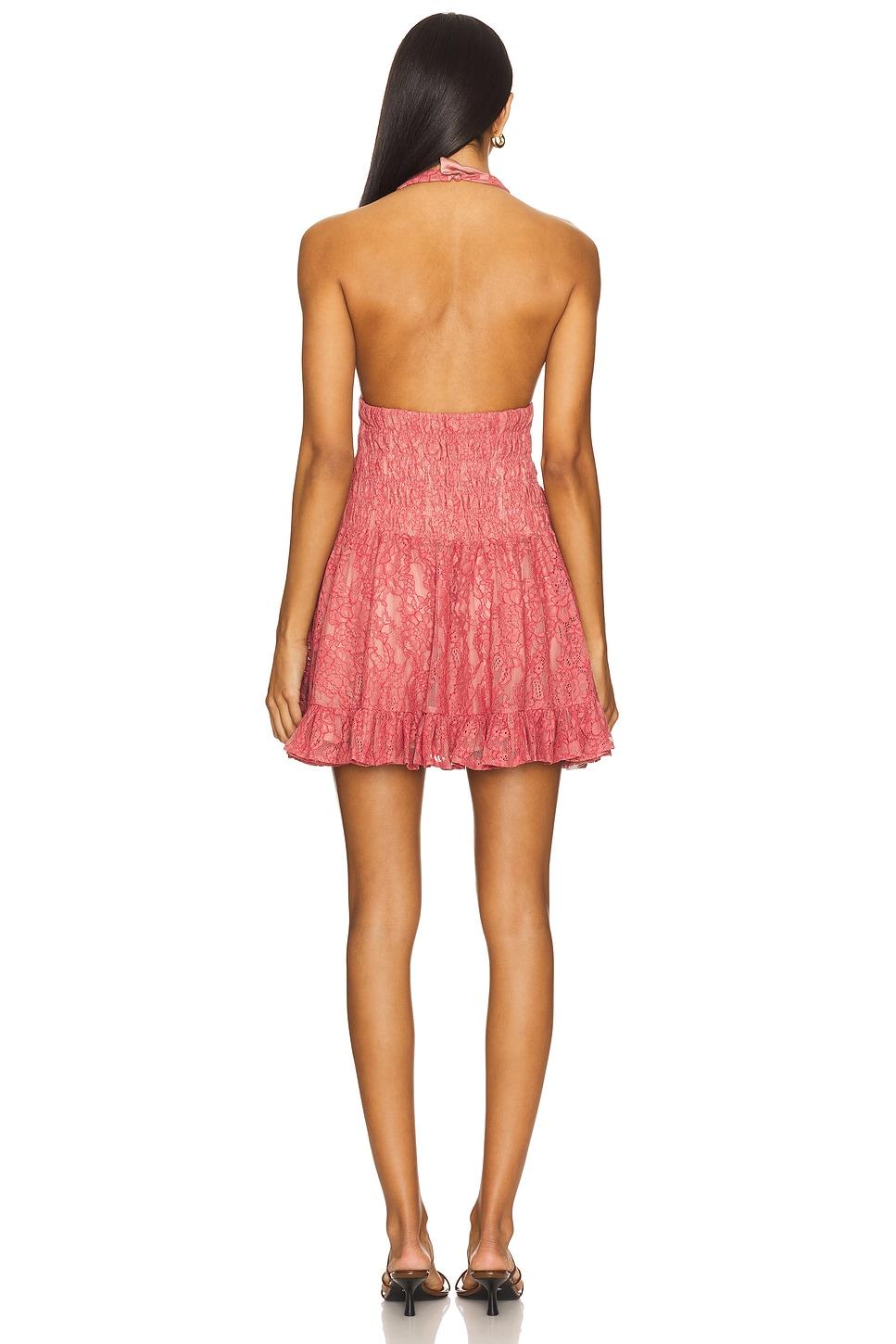 Self: 40% nylon, 33% viscose, 27% cottonLining: 100% polyester. Dry clean only. Fully lined. Back button loop closure. Halterneck styling. Ruffle skirt. Midweight floral lace fabric. Made in China. Revolve Style No. TULA-WD1705. Manufacturer Style No. TRD10076 F25.