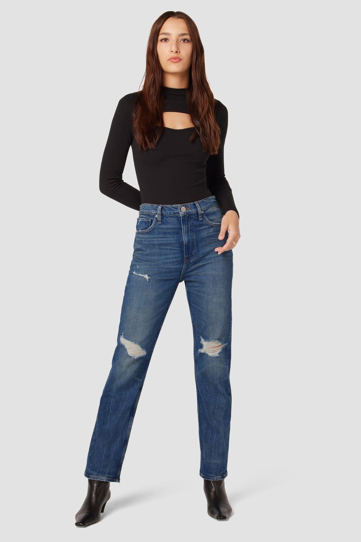 Description Our Jade High-Rise Straight Loose Fit Jean in Asteroid is cut with a loose, ’90s-inspired fit from premium denim with a hint of stretch for extra comfort. Complete with vintage-feel distressing. Product Details Front Rise: 12", Leg Opening: 16", Inseam: 32"Model Height 5’9"Model wearing size 25Measurements based on size 27 Fit & Care Content: 98% Cotton, 2% ElastaneMachine wash cold with like colorsDo not bleachTumble dry low or hang to dry