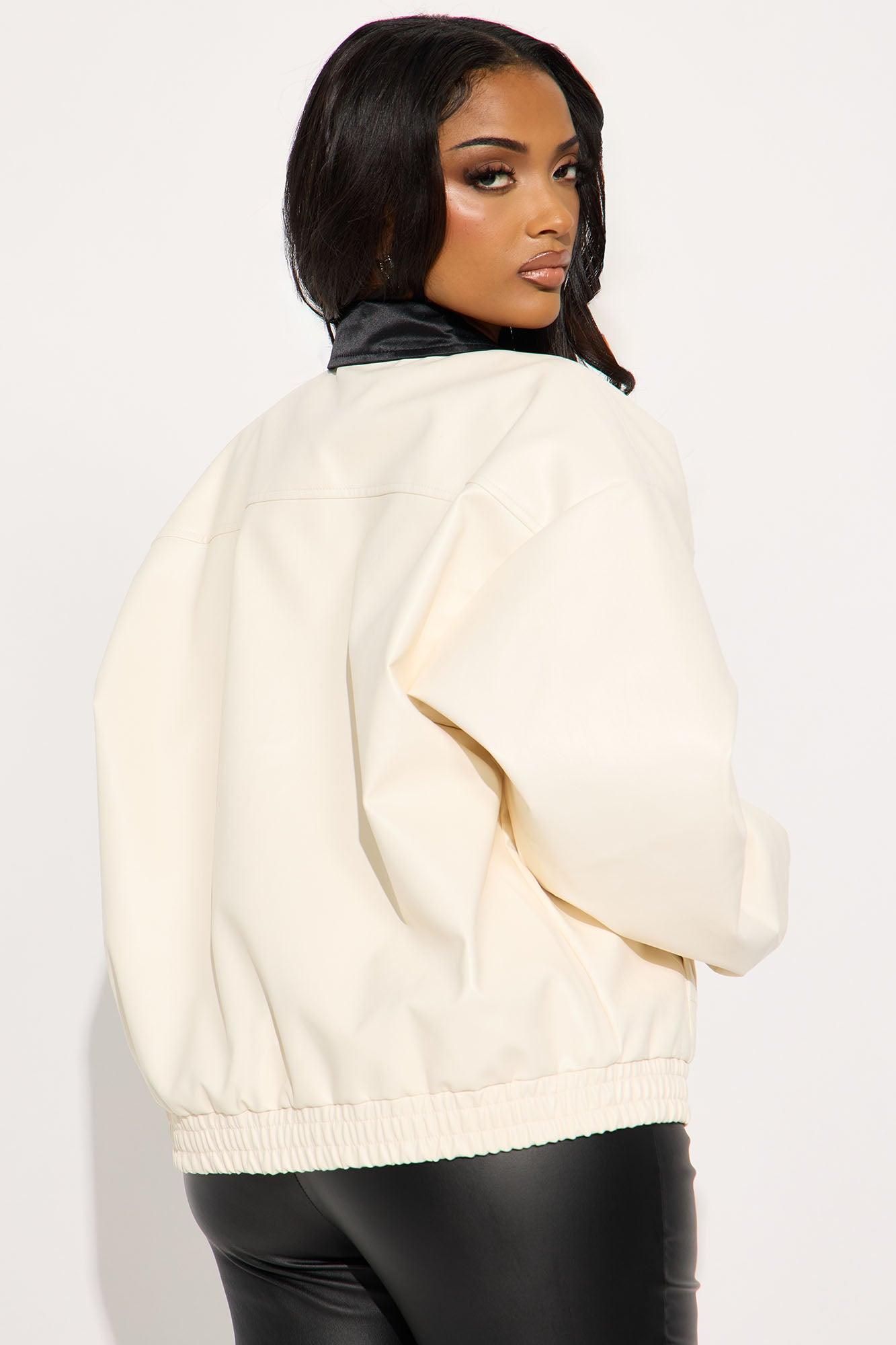 Jade Oversized Faux Leather Barn Jacket - Ivory Female