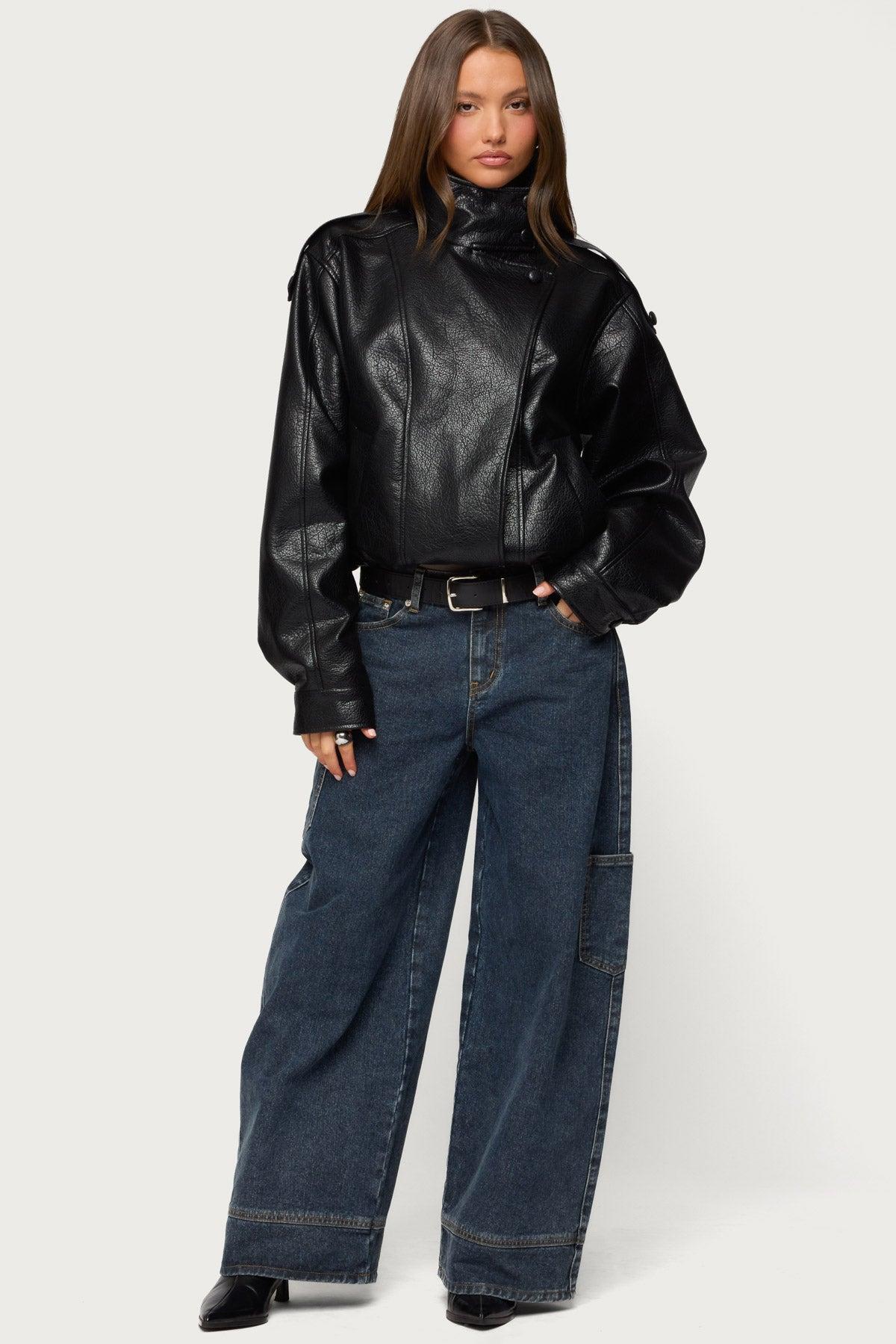 Jaicee High Neck Oversized Faux Leather Jacket