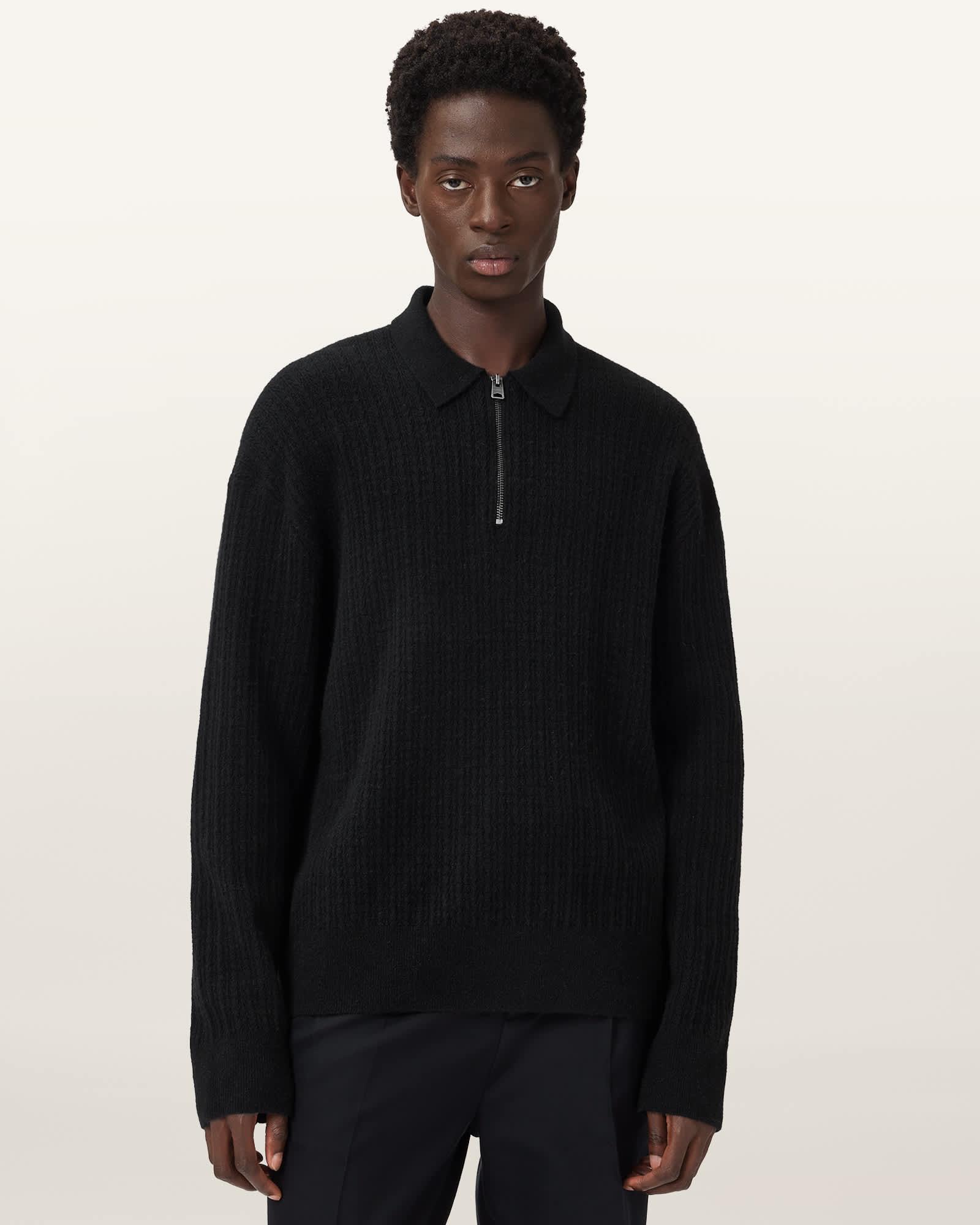 Jakob Long Sleeve Polo Black | ALLSAINTS US