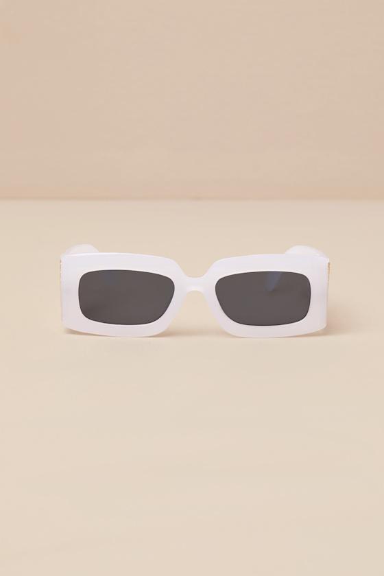 Feel free to soak up the sun all you want, because the Lulus Jalisa White Square Sunglasses will keep you stylish and UV protected! These chic shades feature a classic square silhouette and dark-tinted lenses. Extra wide arms feature shiny gold accenting and a textured, quilted-inspired design, completing the summer-ready look.